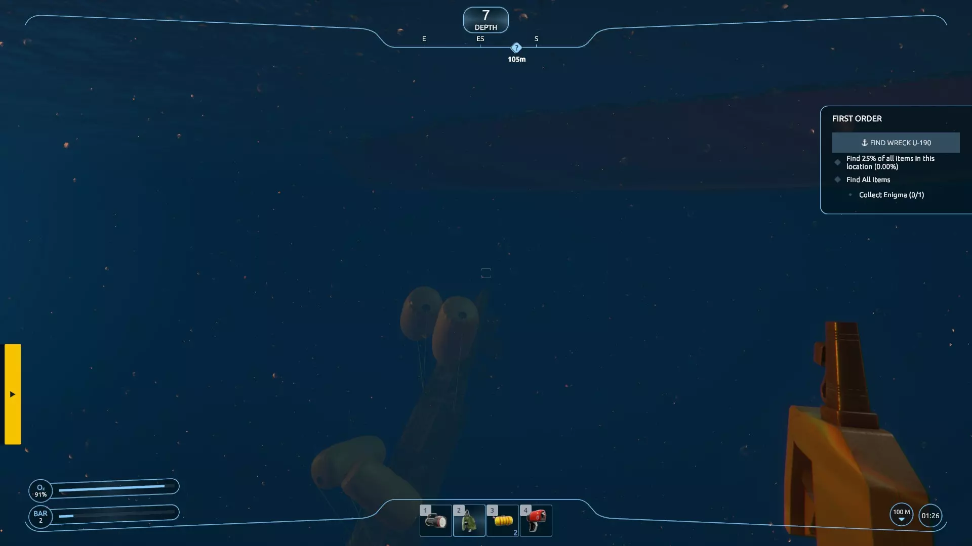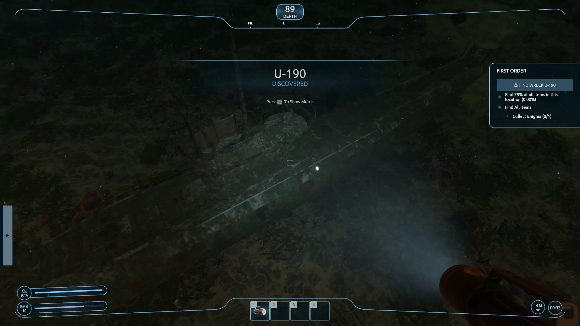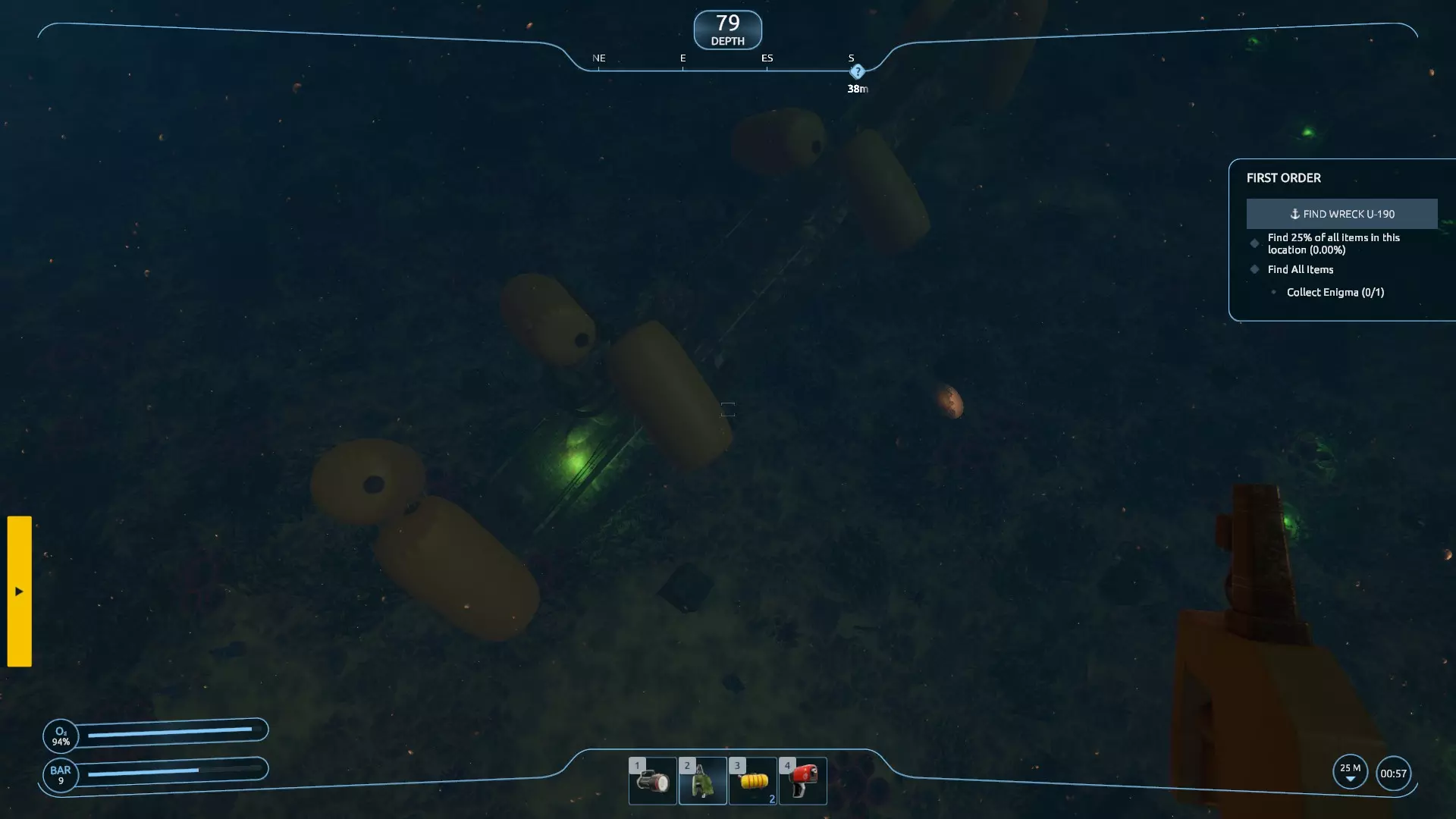 更新说明 免责声明:游戏目前仍存在不少问题,但相比之前有所改善。我依然热爱这个游戏的设定,非常希望它能成功运行,也期待开发者能继续修复它。所以,在此期间,我认为每个人至少应该能成功打捞一艘沉船…… 简介 正如指南描述中所说,我认为这款游戏存在问题(尽管在补丁更新后有所好转,但在更多修复工作完成前,我坚持这一观点)。这实在是太可惜了。据我所知,这个游戏的创意在众多游戏中极具酷炫感和独特性。到目前为止,我已经体验并卸载了 demo,安装、卸载又重新安装了正式版游戏,还多次重启“新游戏”来尝试消除 bug,但对我来说这些都没什么效果。我已经不太会对新游戏感到兴奋了,所以真的希望他们能修复这款游戏。(更新:补丁发布后情况有所好转,但问题仍未完全解决) 在此期间,经过多次尝试和摸索,我浏览了一些讨论内容,发现或许只有第一关每次都能正常运行。在后续的一些随机任务中,我遇到了各种奇怪的生成问题(例如水下漂浮的残骸、无法收集的闪烁物品,导致任务无法完成等),于是回到第一关验证这些说法是否属实——结果确实如此:我终于成功打捞起一艘沉船。希望你也能成功! 看出来我刚才的梗了吗?因为这是一艘U艇……当我没说。