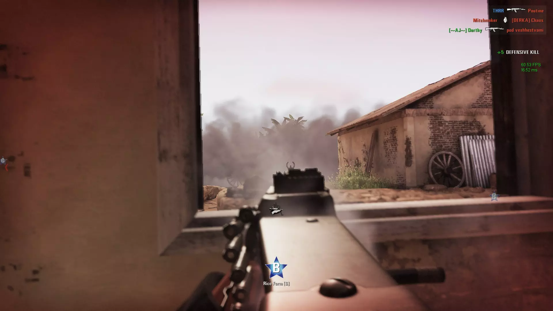 使用烟雾弹。扔完就撤。然后补充弹药。接着再次使用。朝着通往目标路线上没有掩护的侧翼和侧方区域投掷,而不是正面。你的队友已经在掩护正面了,他们正透过机械瞄具密切注视着前方。 为什么要对侧翼和侧方使用烟雾弹?因为第五条规则。 规则五:毕达哥拉斯都比不上你。 五:死神偏爱对角线。 死亡无处不在。你只能尽量延长生命,让它(你的生命)得以延续。 死亡从各个角度悄然逼近,但它有一个最偏爱的角度——对角线。 十次死亡中有八次是被子弹击中。这些子弹来自哪里?通常是毫无征兆的。从《红色管弦乐队》《红色管弦乐队2》《风起云涌》到《风起云涌2:越南》的经验告诉我:对你造成伤害的子弹往往来自对角线(以及侧面)方向。为什么要注意对角线方向?因为对角线方向能为想要置你于死地的敌人提供最佳的掩护和隐蔽。因此: - 始终检查你的侧方角度。敌人总会出现在那里,一直如此。 - 检查远端侧翼的每一处掩体。用爆炸物清除,用子弹扫荡。 规则6:压制能减少伤亡,关于机枪手的几点说明。 6. 火力密度是你的朋友。压制火力是你最好的伙伴。 “呃,压制系统。这是在奖励打不准的玩家。天啊,太缺乏技巧了。完全不需要技术。简直是新手工具!” - 那些死得又快又频繁的玩家,会开始抱怨游戏,最终灰溜溜地回到CS:GO或使命召唤。 如果使用得当,压制效果会非常好。尤其是在团队协作中。射击每一处灌木丛和房屋(子弹往往能穿透大量物体,尤其是M16),以此清理区域并为队友提供掩护。 压制是一个被误解、遭人讨厌的替罪羊。但它能拯救你和队友的生命。 每张地图上都分布着补给点,你可以在那里补充弹药。它们的存在是有原因的。 你有子弹,很多子弹,甚至很多弹匣。为什么不实际使用它们呢? 有一种东西叫做“火力掩护”。 当你的小队/队友推进时,向敌人可能所在或蹲守的掩护物射击(这也可以称为“防御”)。侧面的掩护物是首选,因为存在致命的对角线角度。压制火力有助于干扰敌人的瞄准,还能迫使他们在你的小队/队友推进时低头躲避。 6b. “可我该往哪儿射击?我根本看不到敌人!” 别傻了。压制射击不是朝敌人开火,而是朝敌人可能出现的位置开火。也就是向已知和可能的敌人位置射击。了解地图、知道哪里有掩护,对成功实施压制火力大有帮助,这能告诉你该往哪里射击。 开发者(TWI、AntiMatter games)给你160发子弹,不是让你白白送死浪费掉的。开火吧!把步枪调到全自动,进行点射。在冲向那个重要的占点区域时制造声响! 机枪手注意事项:进行压制时,尽量保持较小的射界角度。因为你的火力覆盖角度越广,敌人能看到你的角度范围就越大。
