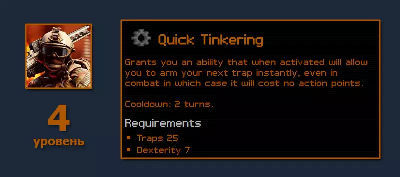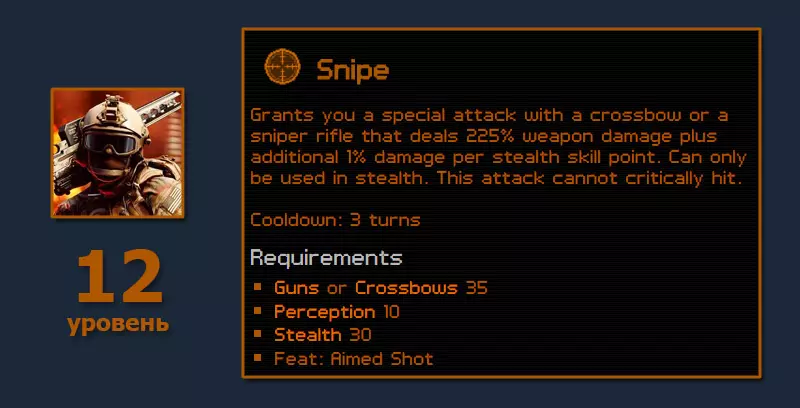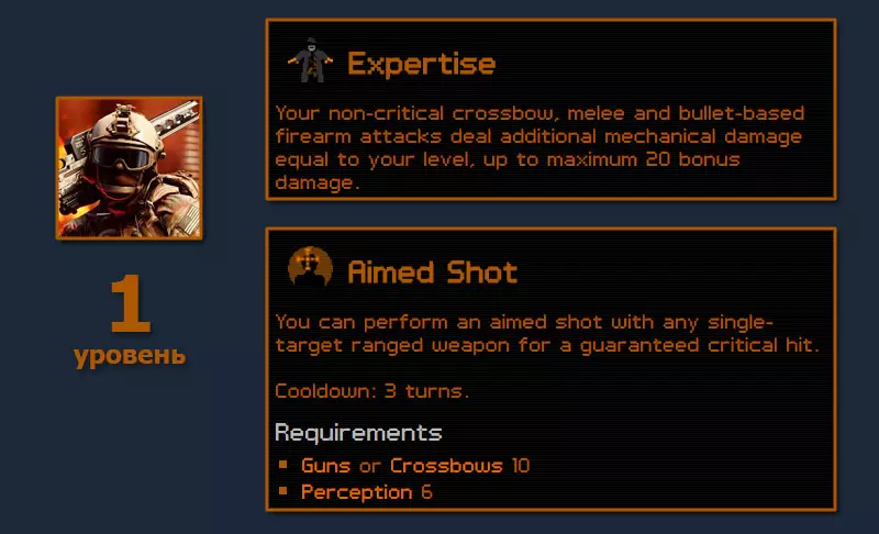 8点智力在游戏初期就能为制作护甲和武器提供非常显著的加成。开启布莱恩的商店后,我们甚至能找到【奇美拉】——最好的狙击步枪的基础部件。没错,它的品质自然不是顶级的(60-80),但每回合能发射两发子弹——这个你懂的:-) 少量敏捷加成,再加上投入到隐匿技能的点数,在第一幕之后就能带来相当不错的提升。没必要把【斯内普】的伤害堆满,它本身的伤害已经足够了。关于陷阱需要单独说明。它们是通关的基础,因为在任何战斗前(在这个难度下,几乎每场战斗都有多个敌人),你都需要提前布置好战场。凭借夜视点数,从黑暗的角落攻击站在捕熊陷阱里的被照亮敌人,几乎不可能打偏。 角色创建 经验获取系统:由你自行决定。属性 力量 - 5 敏捷 - 7 灵巧 - 6 体质 - 3 感知 - 8(后续也如此) 意志 - 3 智力 - 8 随之而来的问题:体质只有3点能通关【DOMINATION】吗?可以的,只要你能在被打倒之前先干掉敌人:-) 技能 枪械 - 15(后续无上限) 潜行 - 15(后续无上限) 闪避 - 0(尽可能) 陷阱 - 25(60) 黑客 - 15(130) 开锁 - 15(130) 机械 - 15(128) 电子 - 15(128) 裁缝 - 15(128) 生物 - 15(130) 说服 - 0(120)。做盾牌相关任务时,70点对我来说足够了。专长与第一部分流程 在第一级时,对于我们的狙击手来说就有不错的选择: