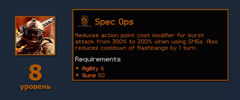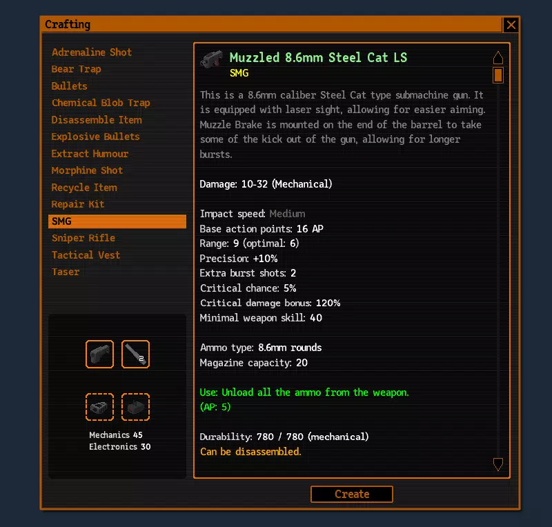如你所见,制作要求与SMG(冲锋枪)大致相同。实际上,在4-5级时我们就能解决主要问题。此外,应该购买任何能提升移动性的靴子。塔比(Tabby)我只遇到过一次,还是在11级的时候。商店里值得寻找夜视眼镜,这虽然是一笔相当昂贵的开销,但物有所值。