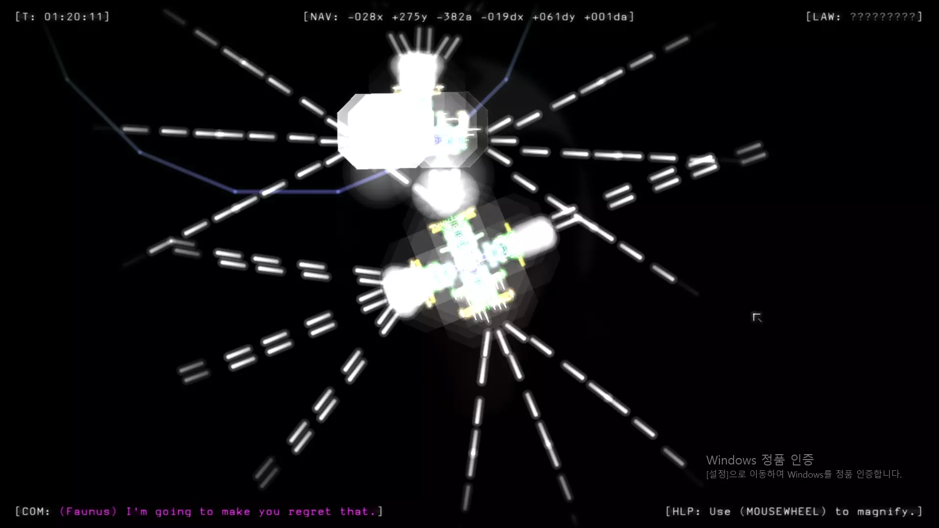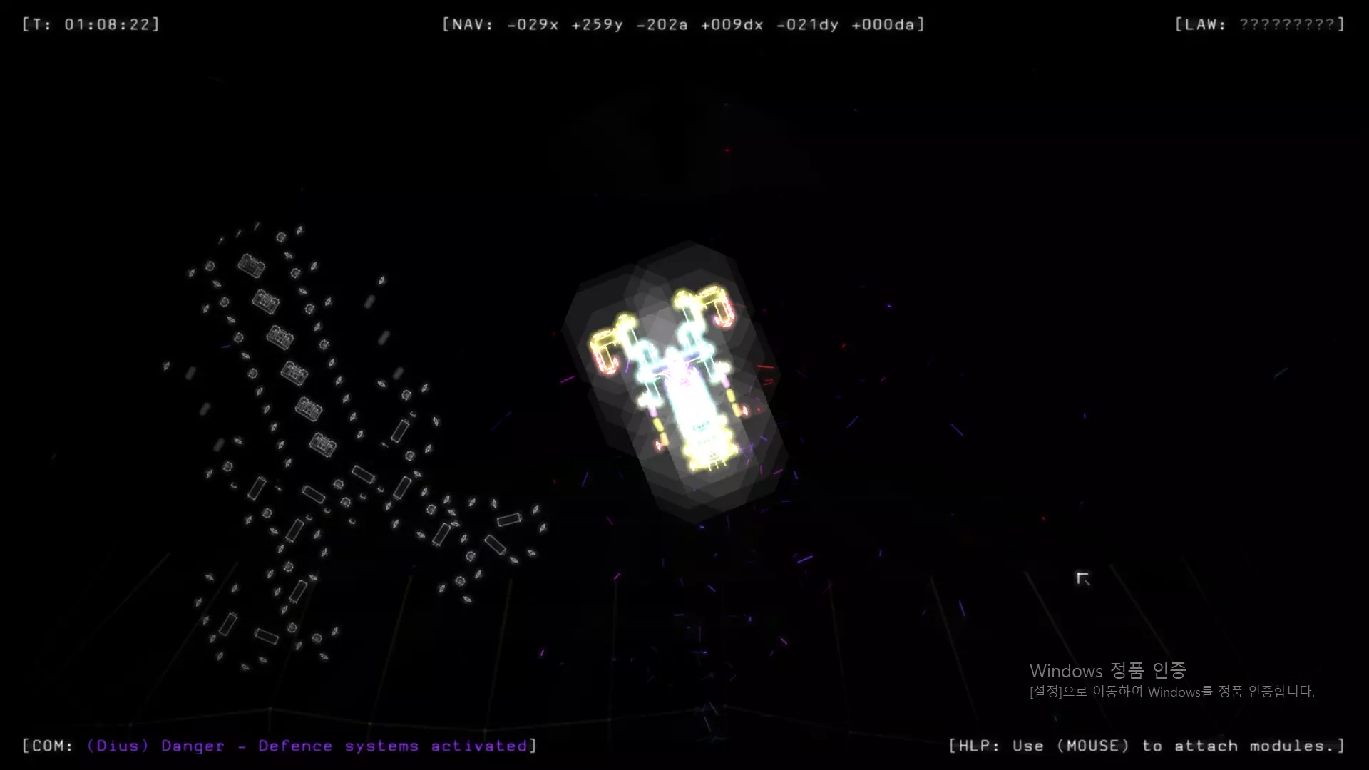 你能看到图片吗? 你应该把注意力放在那些瞄准我的核心飞船的绿色激光武器上。 我把我的飞船设计成这样是为了自杀。 * 不要忘记在自杀炮和护盾之间至少留出1格空白空间,否则,有时炮会穿透你的核心飞船。(非常重要。) 但如你所知,这需要非常非常长的时间(可能超过1小时),因为有一个护盾部件在保护我的核心飞船。 现在想象一下,拥有完全相同形状和顶级部件的克隆体将会怎样? 它将拥有最可怕的激光武器来杀死自己……(当然也有最好的护盾来保护它。) 克隆体的每一次射击,都意味着它在走向自我毁灭。 要达到死亡的结果,它需要40~60秒来击破护盾部件,然后杀死自己。你所需要做的就是逃跑1分钟,并收集所有完好的部件。