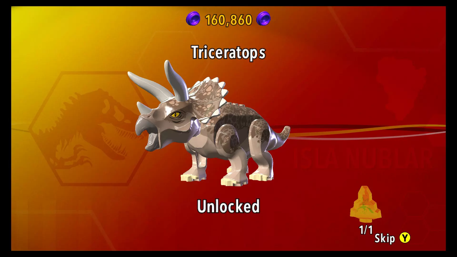恐龙:三角龙 关卡:“欢迎来到侏罗纪公园”,第2部分(三角龙救援) 所需角色:三角龙(故事模式中游戏会提供)或任何具有冲撞能力的恐龙 位置:在三角龙围栏最后区域的后方,寻找一面可破坏的墙壁(墙壁上有金色光芒透出) 方法:在故事模式中使用三角龙冲撞墙壁,或在自由模式中使用具有冲撞能力的恐龙进行冲撞