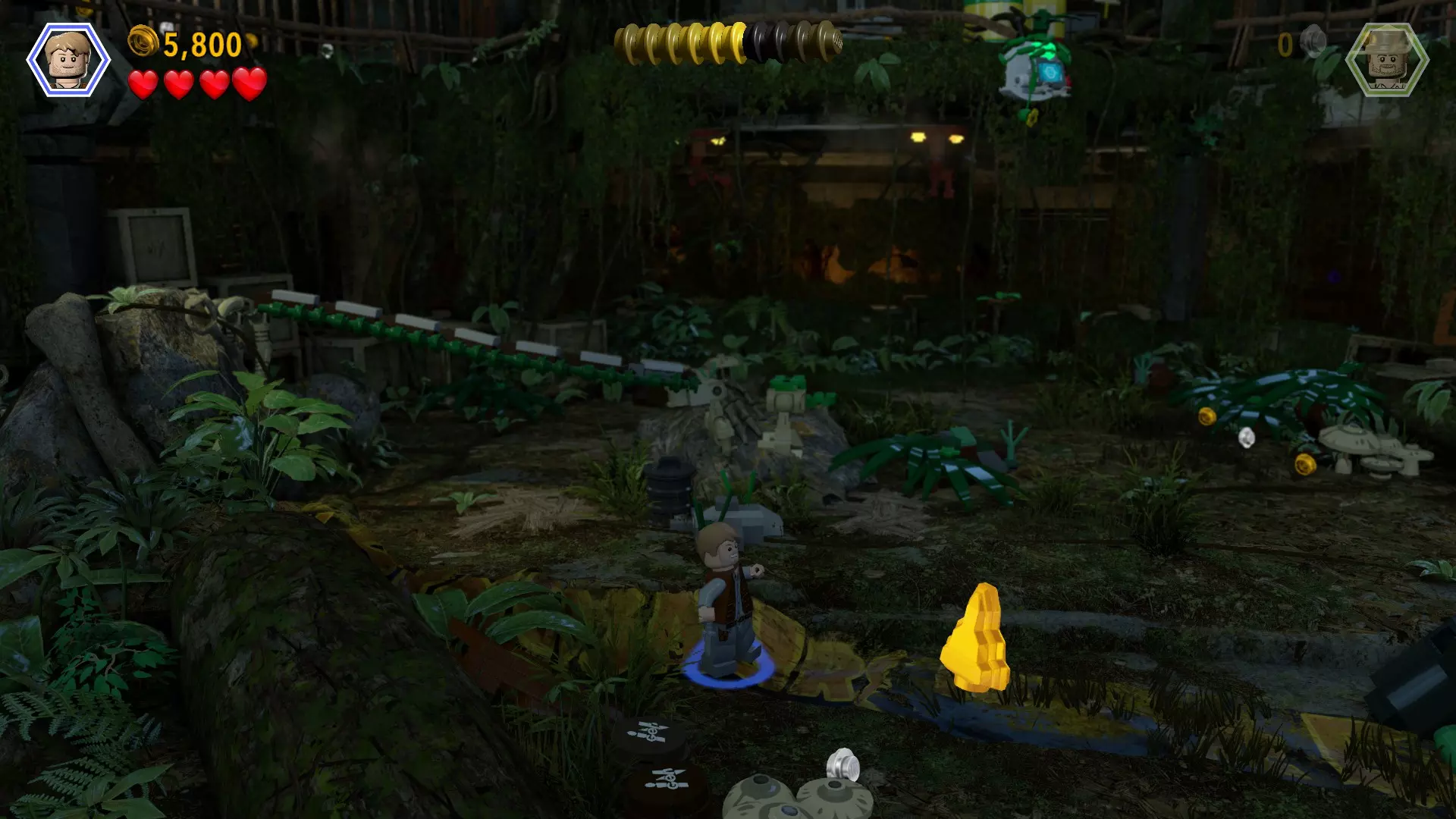 恐龙:腕龙 关卡:圣地亚哥(第一部分 - 圣地亚哥码头) 所需角色:能够照亮黑暗区域的角色(伊恩·马尔科姆或蒂米等) 位置:在船上,笼子和货舱之间有一个黑暗的箱子 方法:操控角色进入箱子并获取砖块