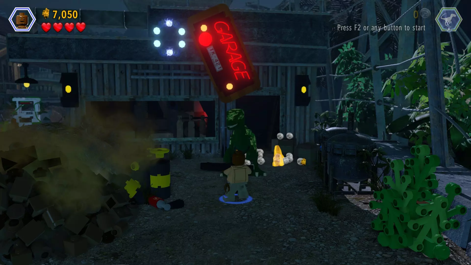 恐龙:迷惑龙 关卡:通讯中心(第一部分 - 园区) 所需角色:迅猛龙、可释放电力角色(如巴里) 位置:经过粪便堆后,带有“车库”标识的暗室旁边 方法:迅猛龙可追踪一片泥土区域,追踪后会找到挖掘点。挖掘并组装散落零件,获得蓝色目标。使用可释放电力角色射击目标。车库标识亮起后,再次射击。琥珀砖块将会掉落。
