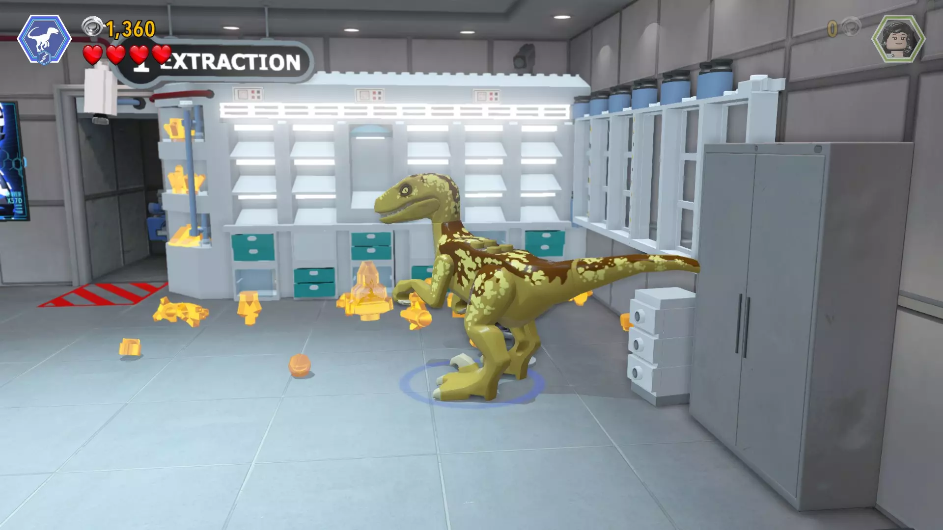 恐龙:沧龙 关卡:主街对决(第一部分 - 创新中心) 所需角色:黑客角色(莱克斯等)、伪装角色(欧文、埃里克·柯比)、能使用英根公司手部扫描仪的角色 位置:主房间底层最左侧有一个隐藏房间(基本就在你开始关卡时的正左方) 方法:使用黑客角色操作安全终端进入隐藏房间。进入“提取实验室”,切换到伪装角色。悄悄躲过摄像头进入旁边的小房间,然后切换到能使用英根公司手部扫描仪的角色。一个柜子会打开,砖块就会掉出来
