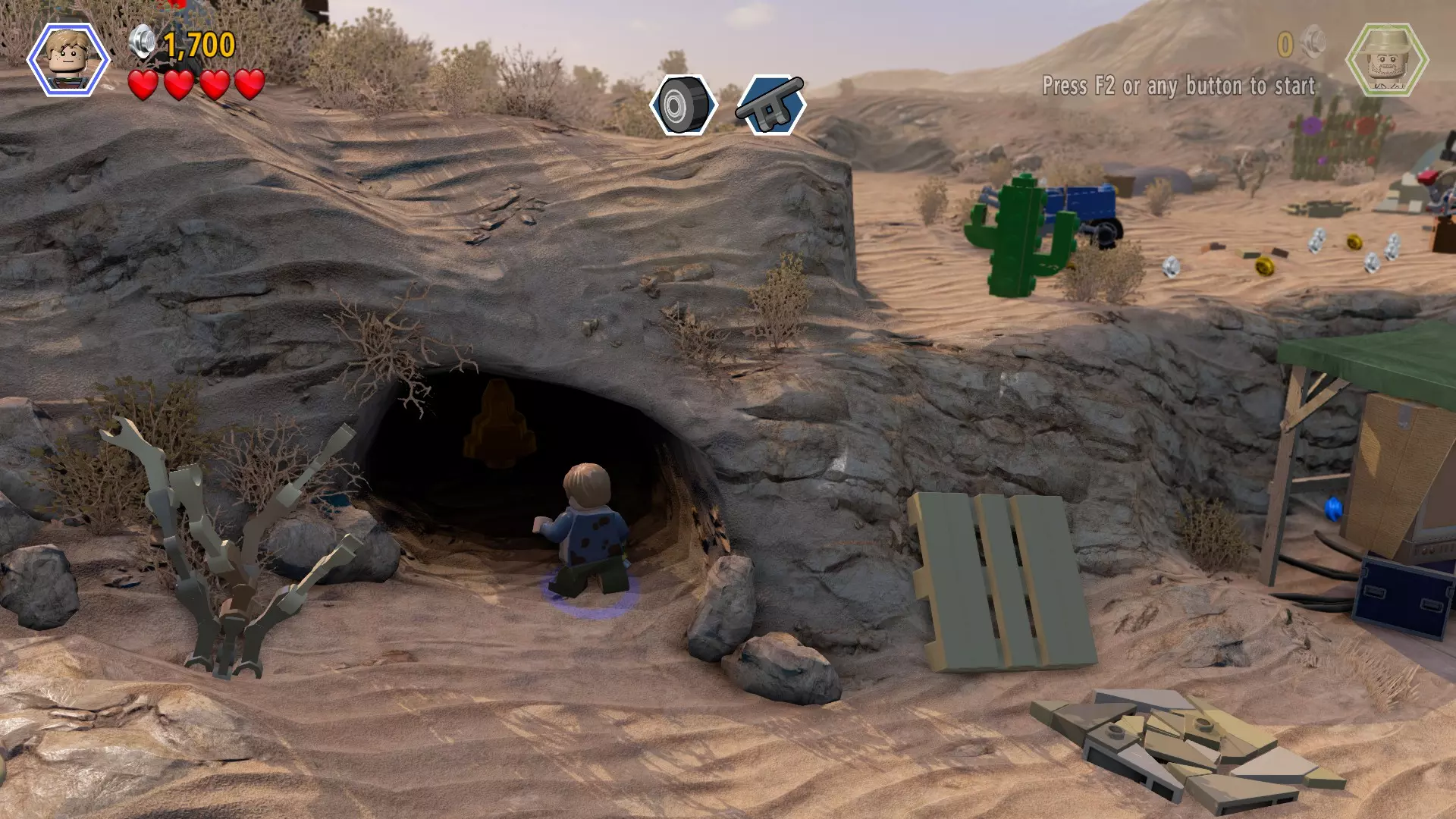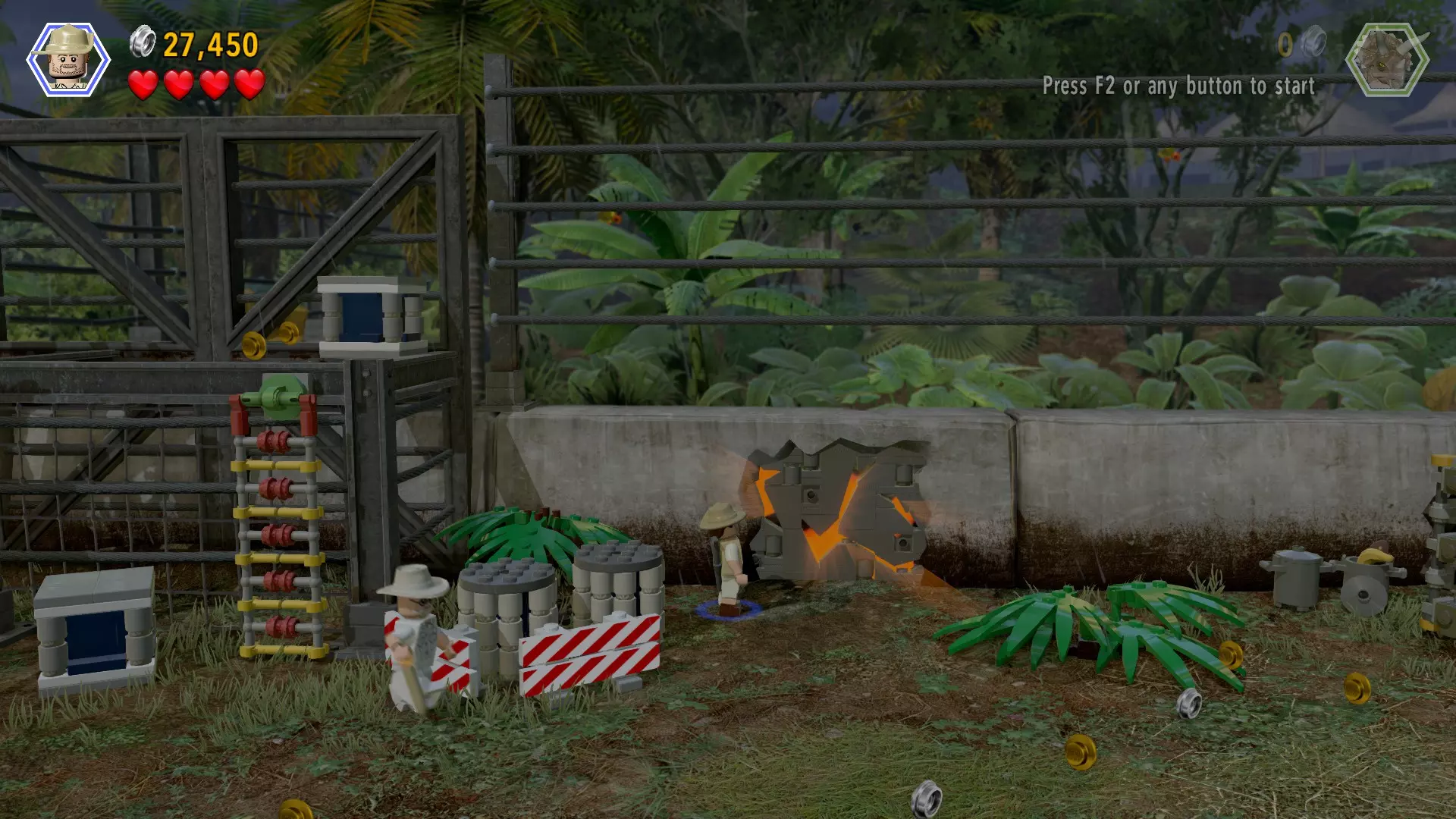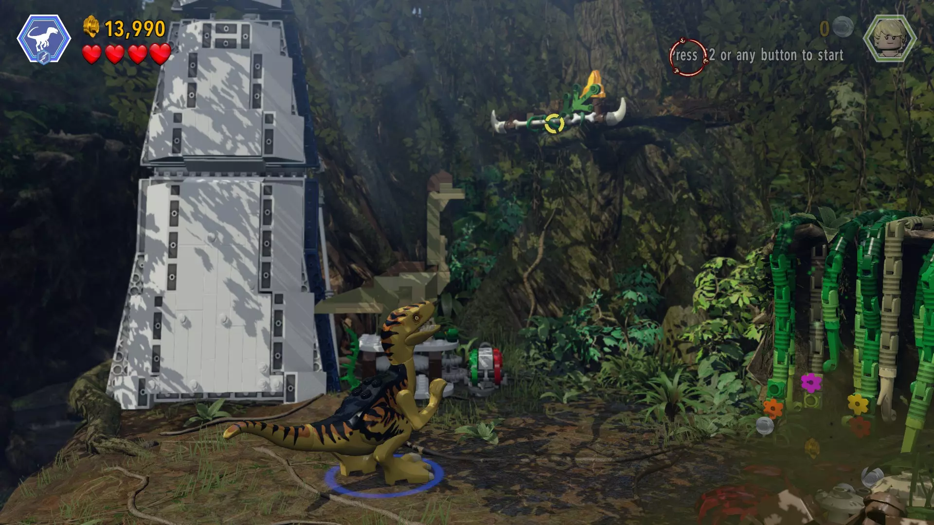 恐龙:暴虐霸王龙 关卡:界外区域(第二部分 - 暴虐龙逃脱) 所需角色:任意使用枪械的角色 位置:在巨型电锯之后,寻找悬挂着的蓝紫色花朵 方法:射击所有3朵花上的3个目标,砖块就会出现