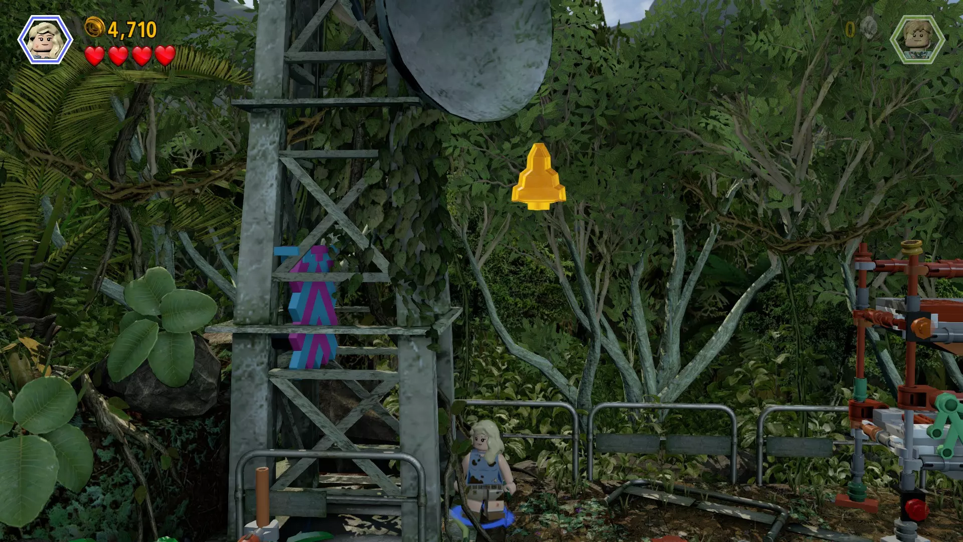 恐龙:冠龙 关卡:着陆点(第一部分 - 着陆点) 所需角色:敏捷型角色(萨拉·哈丁等) 位置:在非乐高无线电塔旁悬浮 方法:让角色跑跳至蓝粉色砖块上,然后立即向右跳以获取琥珀砖块
