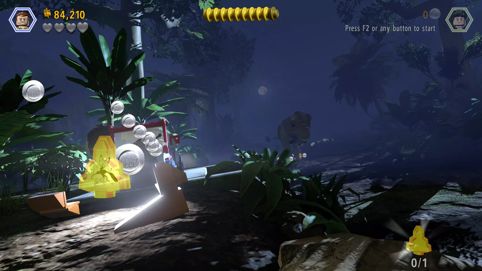 恐龙:秀颌龙 关卡:英康抵达(第二部分 - 移动实验室) 所需角色:任意角色(可能需要敏捷型角色) 位置:移动实验室顶部 方法:当移动实验室悬在悬崖边时,从其正面跳上去,一旦到达顶部,直接跳向砖块即可
