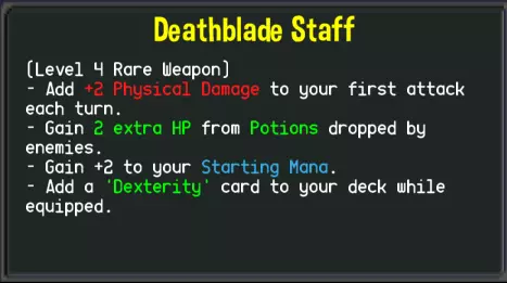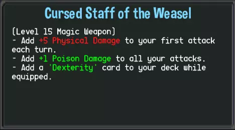 擅长生成【不死随从】,同时通过丢弃自身卡片造成各种效果的职业。玩法很特别,但没拿到关键卡片可能会无法通关。【召唤术】可以生成一张【不死随从】进行物理输出,升满三阶的伤害很高(消耗2点法力值造成27点物理伤害),不过要注意【不死随从】是“直到战斗结束都不会移除”。【黑暗之矛】根据弃牌堆的卡数给予对方纯粹伤害,弃牌堆牌数达到要求的话威力还算不错,搭配【埋葬】埋卡补魔、【召唤术】生成更多随从卡,让弃牌堆的卡片越积越多。不过在地牢第三层如果碰到有物理抗性的敌人(尤其血量超过200的那种),你的输出会非常无力。战斗拖得越久,【亡灵仆从】(Undead Minion)就会越积越多,导致没办法立刻抽到想要的魔法卡。这时第三层的【亡灵大军】(Undead Horde)就非常重要了,效果是使用后获得两张【亡灵仆从】,且本回合每次使用【亡灵仆从】就抽一张牌。不用我说这张卡有多关键了吧,尤其抽到【召唤】(Summoning)又能继续产生更多【亡灵仆从】、使用【亡灵仆从】后又能继续抽卡。有与没有这张卡游戏体验真的是天差地远,甚至通关与否都要看有没有入手它。 其他卡片的话,【黑暗能量】(Dark Energy)是本家卡组里唯一的恢复手段兼具抽卡效果,不过并不强力,一般入手1-2张即可。【尸体炸弹】(Corpse Bomb)效果是将弃牌堆洗入卡组,每有一张造成3点毒伤。通常弃牌堆张数在8~15张左右,顶多也就两张【亡灵仆从III】的伤害吧。然而这张卡要耗费15点法力值!升级后效果变强,法力值消耗却也更多,游戏内升级卡片的机会有限,不太可能升级到这张卡片。总之绝对不要入手【尸体炸弹】。 通用卡池方面,【占卜】是相当强大的滤牌兼抽牌卡,对前期弃牌堆的累积有很大贡献。【雷击】可入可不入,对死灵法师来说影响不大。【致命毒气】被卡片效果丢弃就造成30点纯伤害,效果和自身的弃卡战术十分契合,能入手多少张就多少张。【卡牌筛滤】也可以配合【致命毒气】做针对性的弃卡。 【DLC职业】龙(Dragon)