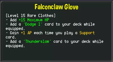 主要是靠【隐藏】令对方卡无效,如果有机会入手【猛击】那会更好,至少相对来说AP消耗少了1点。【闪避】+20%回避率,多张累积起来效果也是很强的。总体来说,对手经常会陷入出不了牌的情况,角色输出能力不必太高也可以安全通关。游侠的AP非常吃紧,建议至少入手一个“当打出支援卡时+1 AP”的装备。 【基础职业】骑士