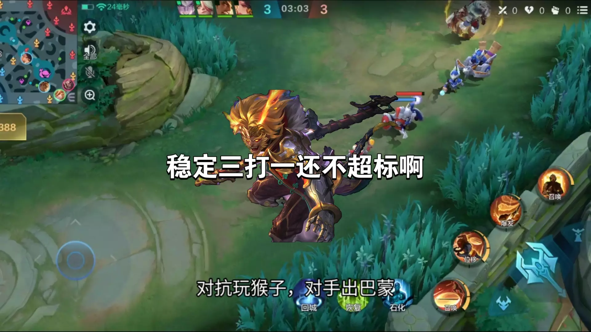 这是MOBA手游的对战内容,展示了理想队友的表现:被压制时不骂人,还会帮队友蹲人、骗技能,配合队友完成对战操作,诠释了强者不抱怨环境的游戏态度。