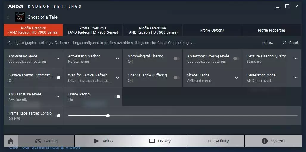 1. 进入Steam,为《幽灵故事》设置启动参数(右键点击属性)。 2. 添加命令-window-mode exclusive(无需引号),点击确定。 3. 打开《幽灵故事》的Radeon设置。 4. 在交火设置中选择AFR Friendly模式。 5. (可选)将帧率目标控制调整为你想要的设置。 启动游戏时可能会出现黑屏,只需切换到桌面再切回游戏即可正常运行。此外,Steam界面可能会频繁闪烁,建议关闭。 祝你好运。 窗口模式/交火设置
