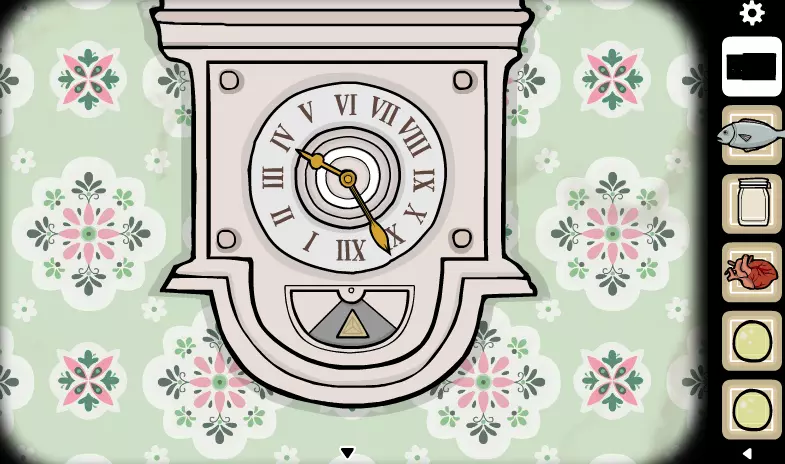 点击纸张数次以获取钥匙。 用钥匙打开柜子,从里面拿起罐子。 退出界面,向右移动两次,然后放大时钟右侧。 多次点击钉子和木棍,直到露出一只手。 用刀割向那只手并点击它,捡起心脏。 退出界面并向左移动。 打开窗户,在每个角落使用贝壳。 捡起鱼,并将心脏放在之前的位置。 点击打开的洞口,向前移动两次。