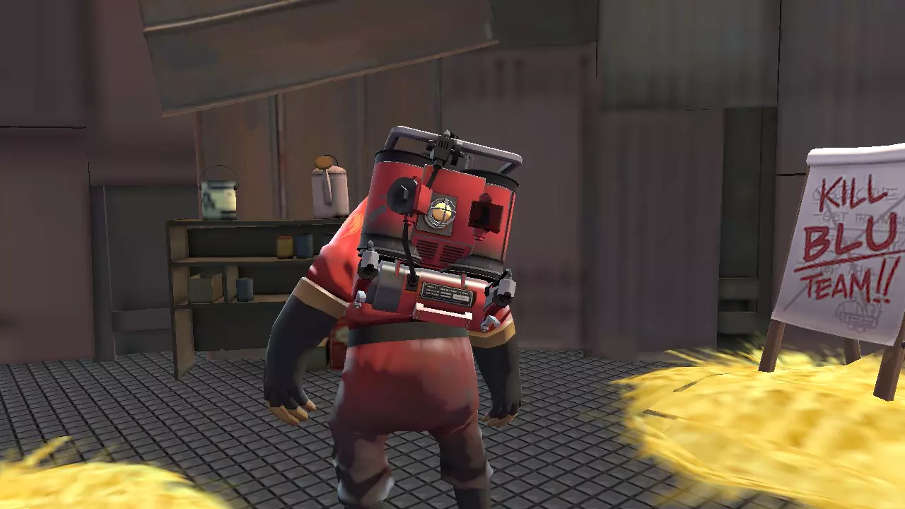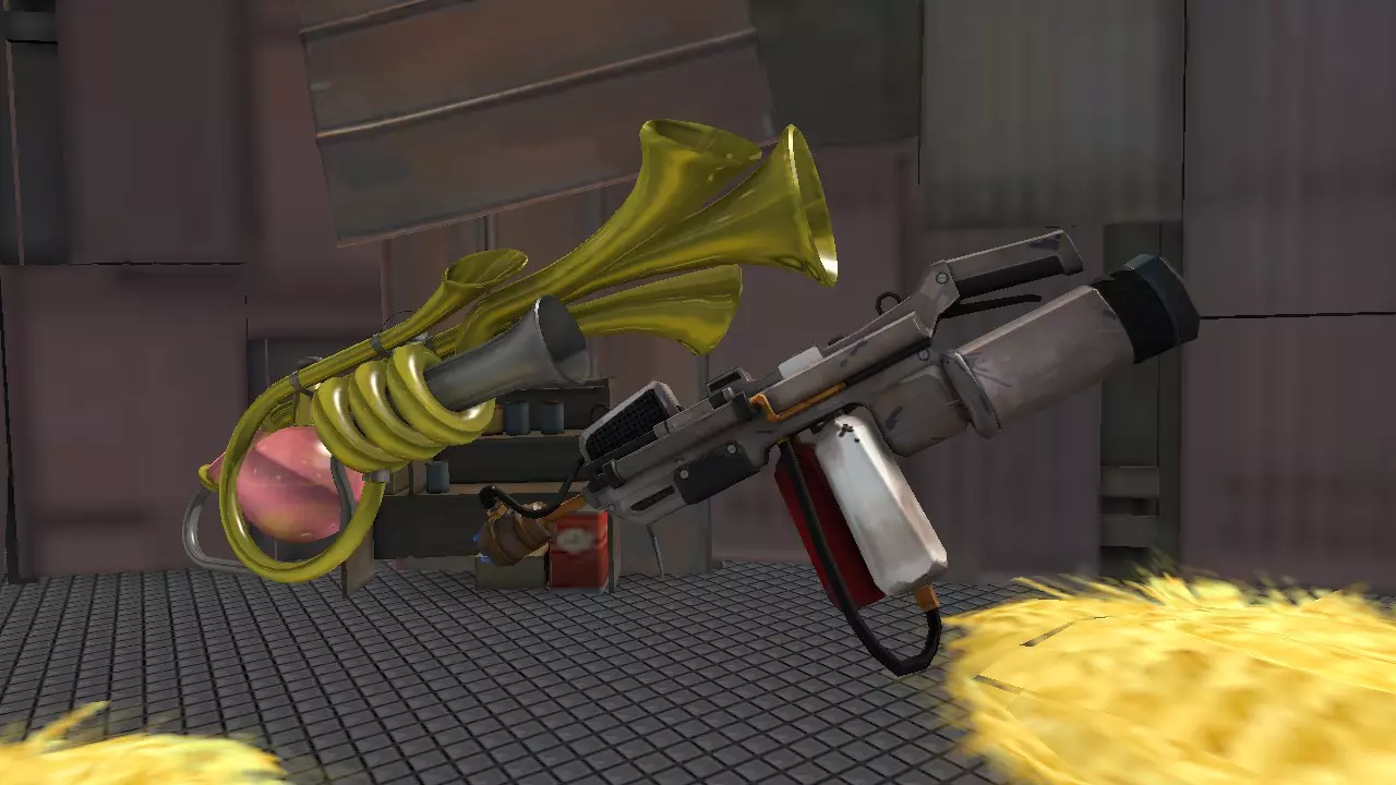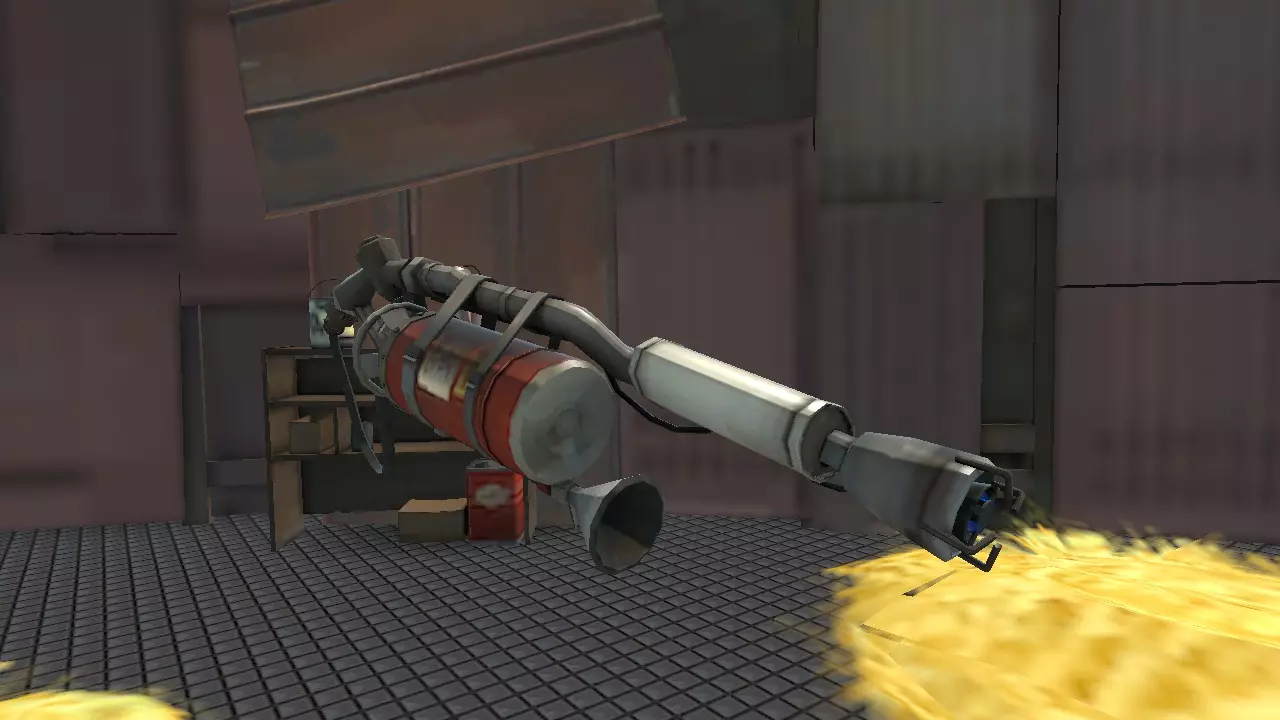 一切的基础。这是一把完美且平衡的火焰喷射器。有了它,你可以击退敌人、反弹任何投射物、为队友灭火,当然还有点火。此外,你还肩负着一项责任:间谍检查。如果你的队伍里有工程师,你必须检查基地的每个角落。提示:如果你看到队友身上着火,无论如何都一定要帮他灭火。因为这样不仅能救他一命并获得他的尊重,还能为自己增加20点生命值,这有时能救你一命。 另外,当你在水中时,把火焰喷射器收起来,因为水是点不着的 -_- 2 - 彩虹喷火器和诺斯特罗莫火焰喷射器