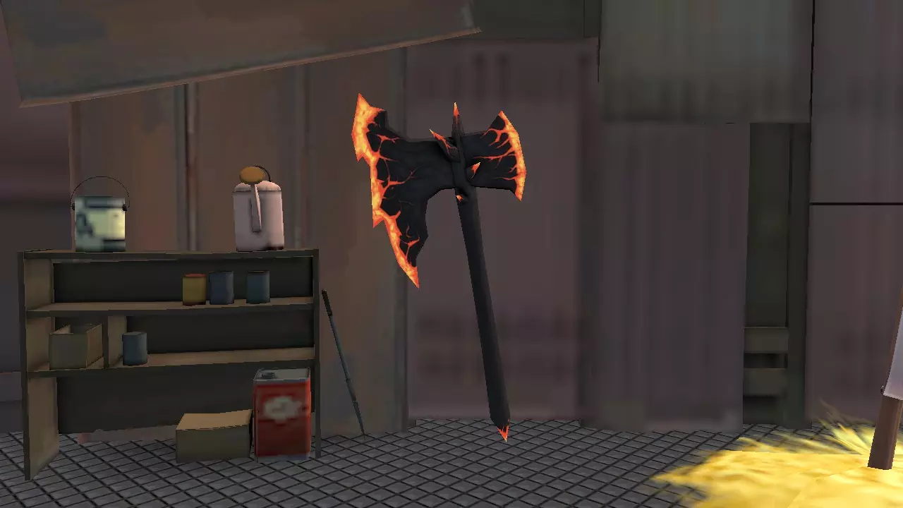 会产生一片汽油云,若敌人进入其中并受到伤害,就会被点燃(即使是敌方火焰兵也会以某种方式被点燃),但该技能的冷却时间为一分钟,且在重生时技能处于未就绪状态。 建议:最好在人机对战/ mann vs machine 模式中使用,因为它在这些模式中比在休闲模式中更有用。 近战武器 - 斧头及其他 0 - 全职业近战武器