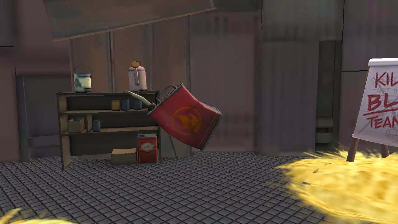 对被浸湿(水、尿、牛奶和汽油造成的浸湿状态)的敌人造成100%暴击伤害,并且可以消灭黏弹,但伤害略低且没有随机暴击。这是2fort地图上的理想武器。 建议:在有水的地方使用它。 8 - 背刺