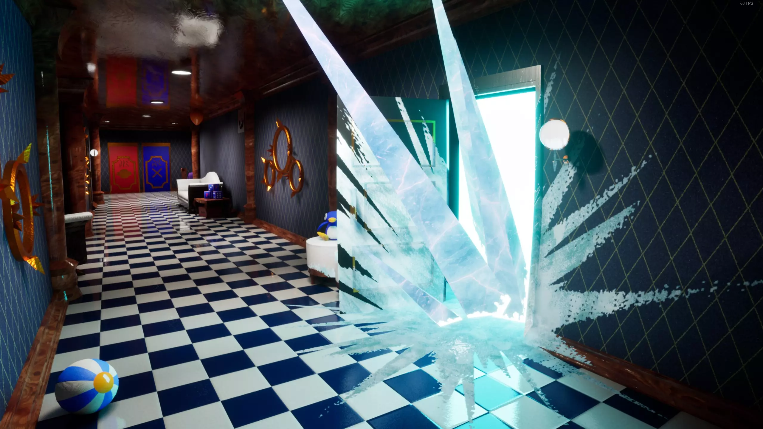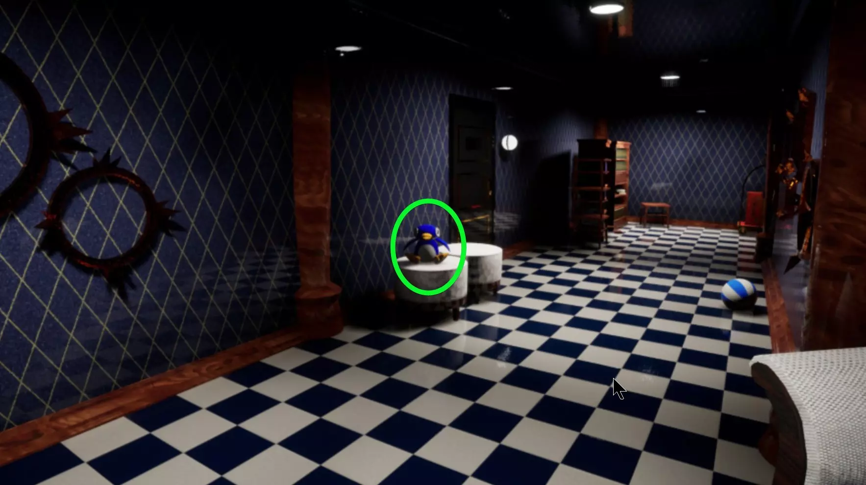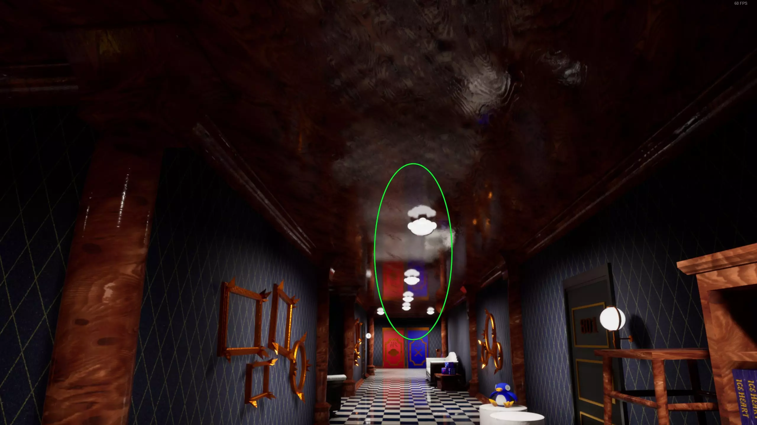 地图上的异常现象 滑溜溜的地面。唉……要是有溜冰鞋就好了。 你在游戏中化身为一只小企鹅(走路时会听到独特的沙沙声,就像脚掌拍打地面的声音)。 天花板上正好有一只企鹅在你头顶(你会听到它的脚步声)。