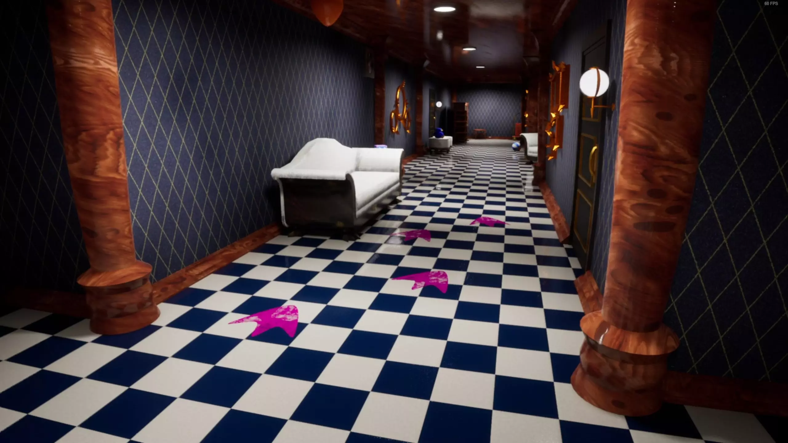 地板上的粉色痕迹。