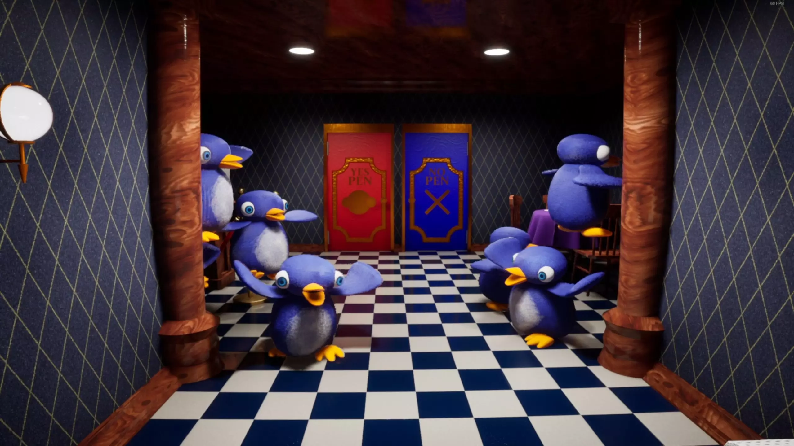蓝色的门上有一个企鹅头,代替了X符号。