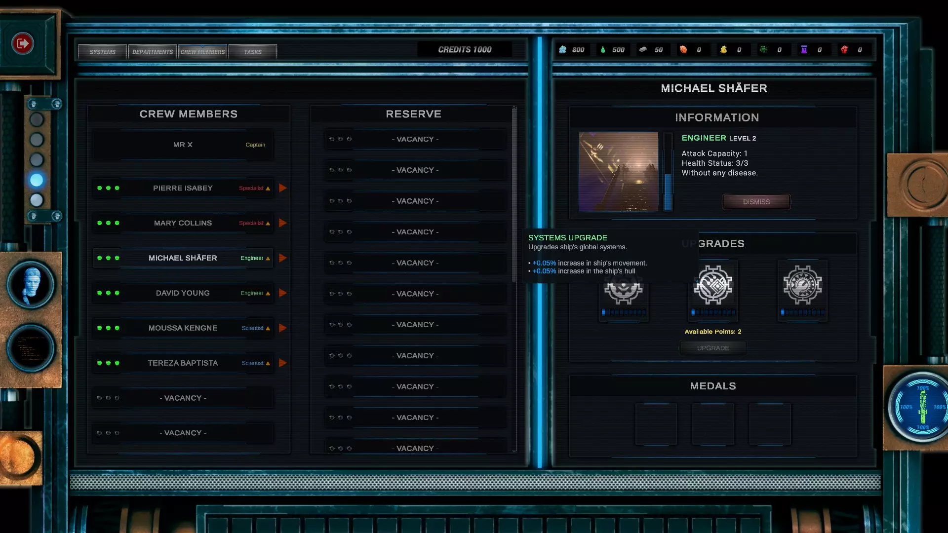工程师可以提升你的舰船速度和船体耐久度。