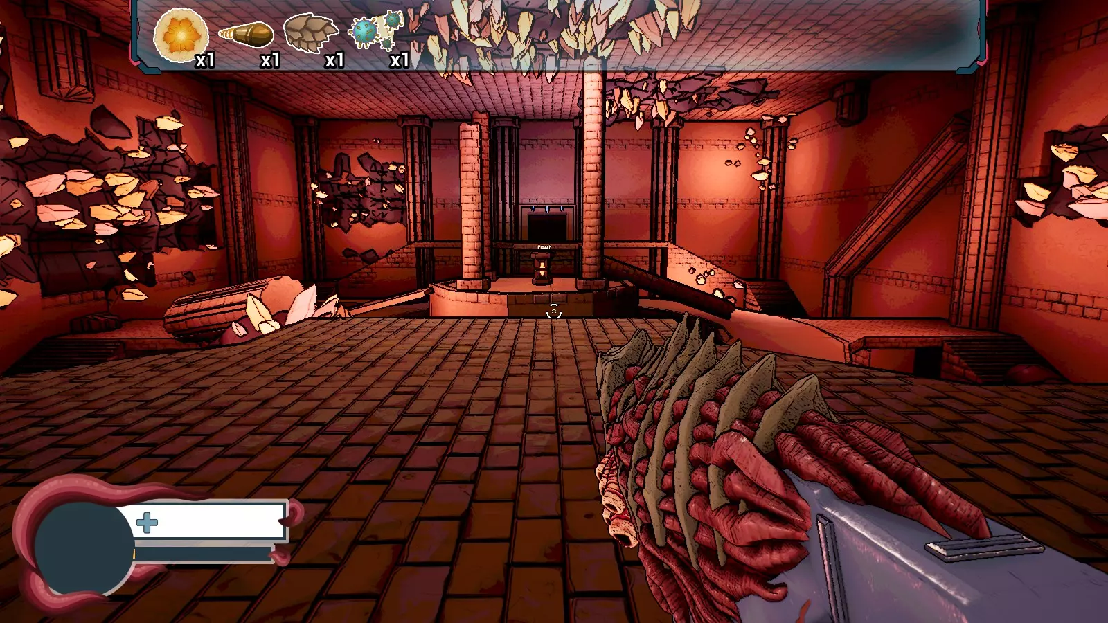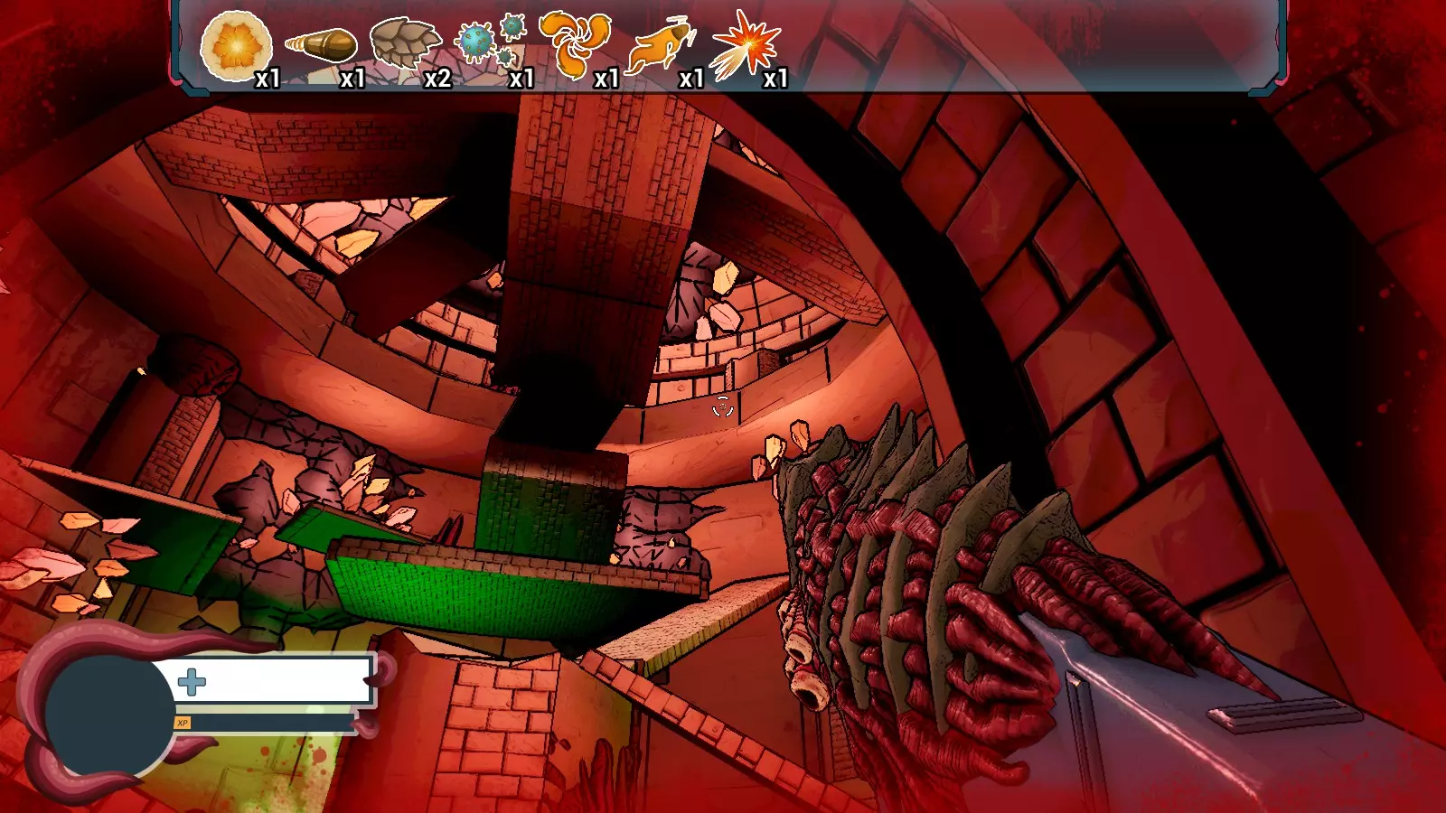 这是最简单且最大的地图,敌人数量也最多。你只需奔跑、射击、跳跃、再射击、再奔跑…… 每张地图都有一个额外物品,当你拾取时会夺走你一半的生命值(比如钩子或黑洞),但有时你付出生命值却什么也得不到。