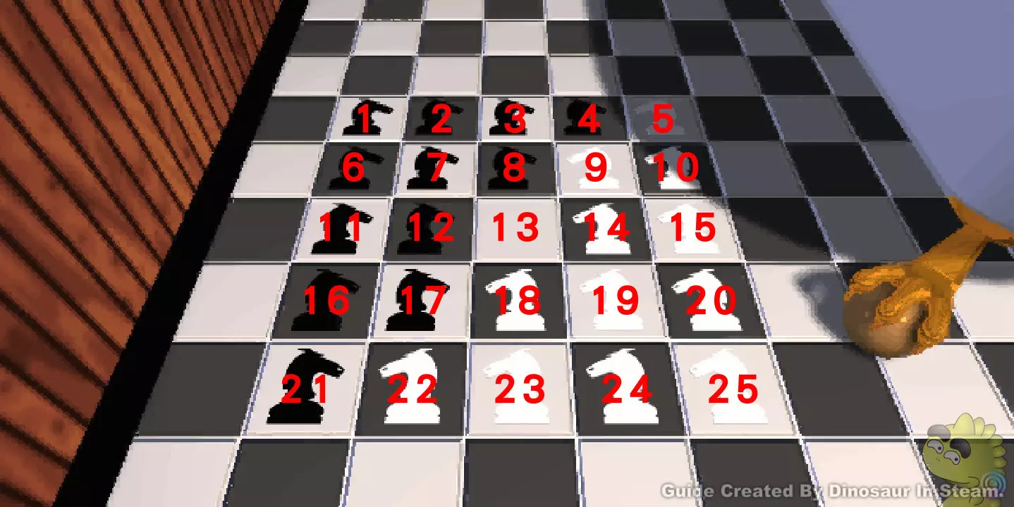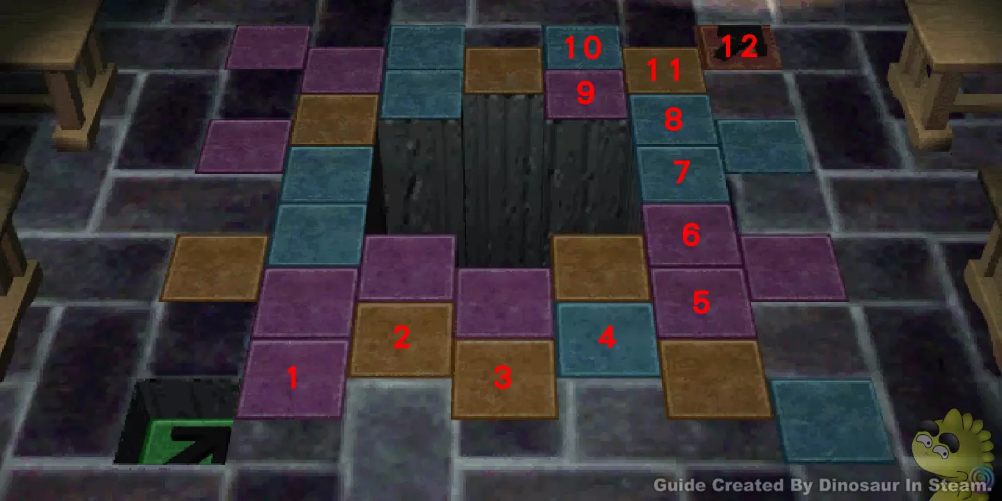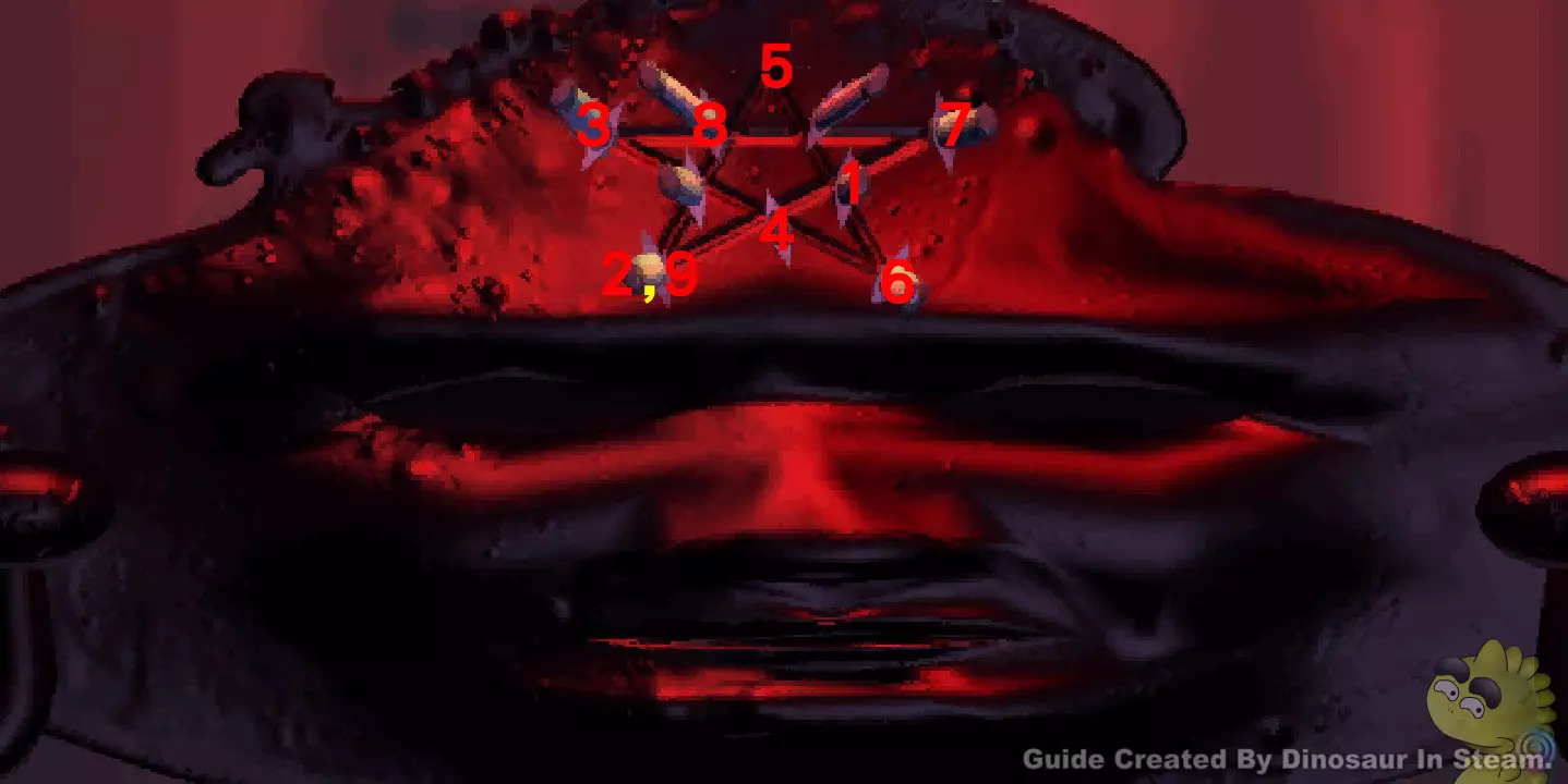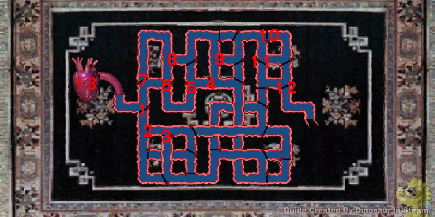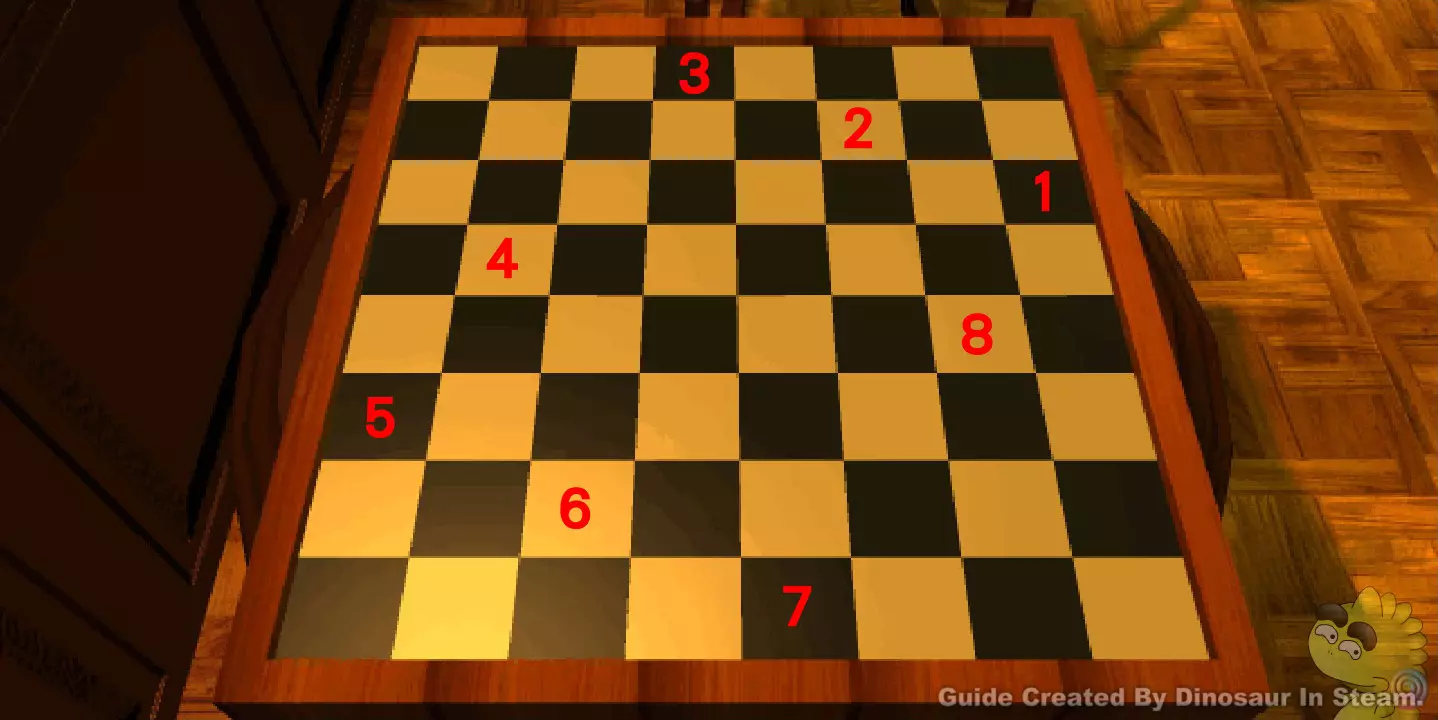 G19可参照图中编号,按以下步骤过关。 正确解答:1,5,8,3,2,7,2,8,2,1,5,6,5,4,3,8,2,8。 过完此关卡请回到一楼G2位置,面向楼梯检查地板后传入密室。