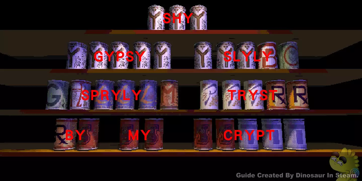 G04请按照附图英文排列罐头来解开谜题。 正确解答:SHY ♥♥♥♥♥ SLYLY SPRYLY TRYST BY MY CRYPT。