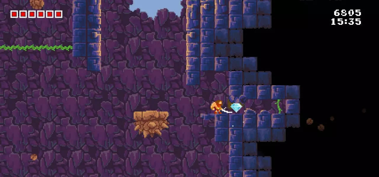 在第二次巨石追逐之后。你必须足够快,在巨石撞到墙壁之前爬上藤蔓。 第6颗钻石