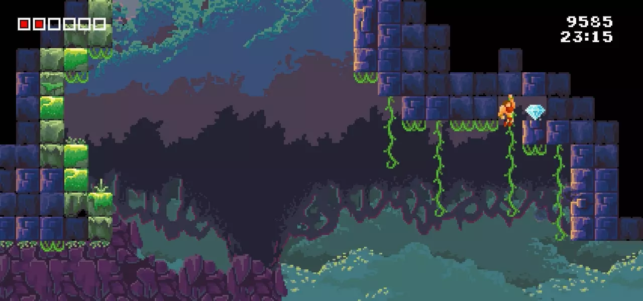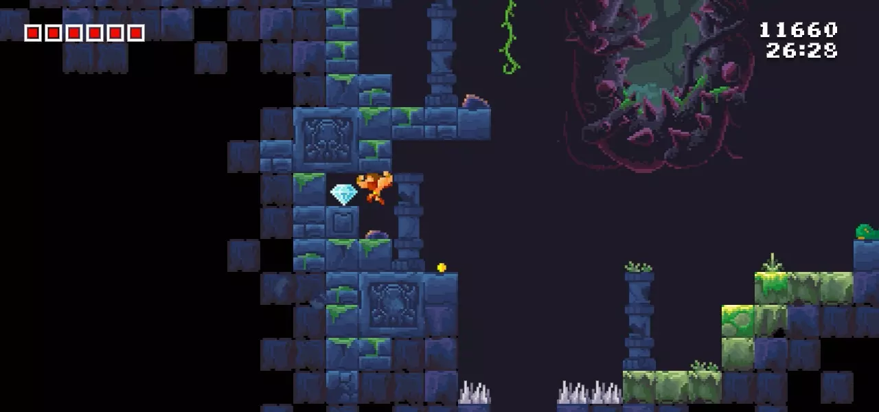 当你一路通过这个平台跳跃区域后,需要乘坐移动平台向下移动一小段距离。不用担心,你可以通过藤蔓再次向上攀爬。 第五颗钻石