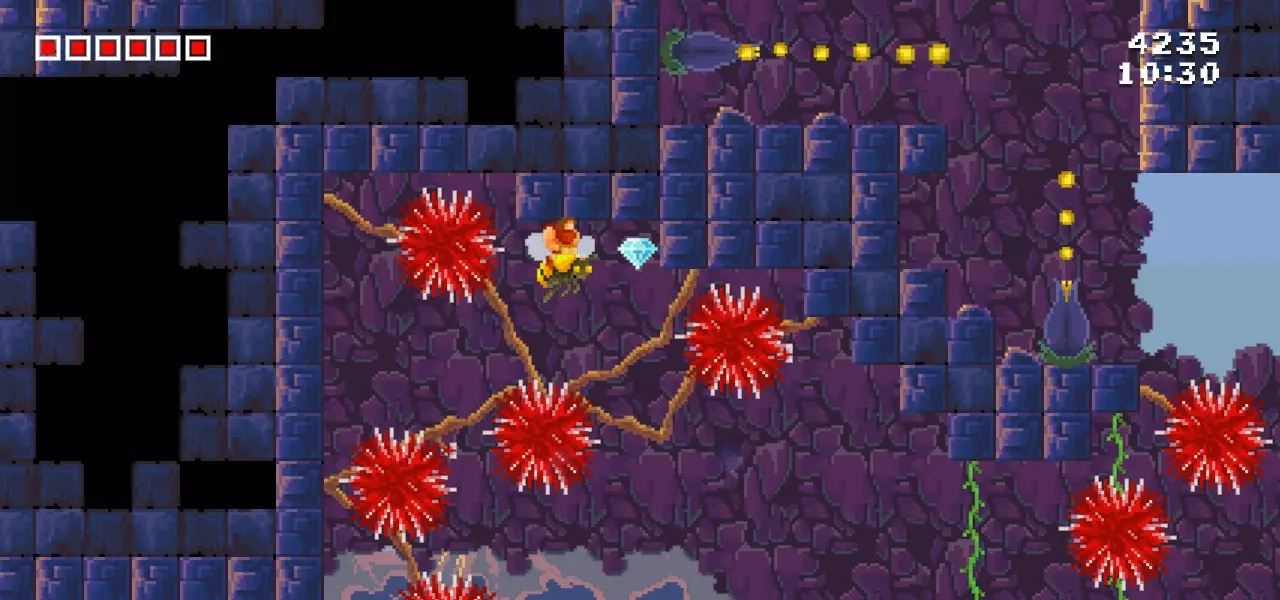 你需要一只蜜蜂来破坏左侧的屏障。如果你能一直待在蜜蜂身上,就能拿到钻石。这是比较棘手的一个。第16颗钻石