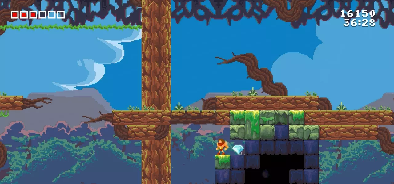当你来到可以让你跳回地面的大型摇摆藤蔓处,向左飞并抓取钻石。当藤蔓处于最低点后立即跳跃,你将获得最大的速度加成。 第十颗钻石
