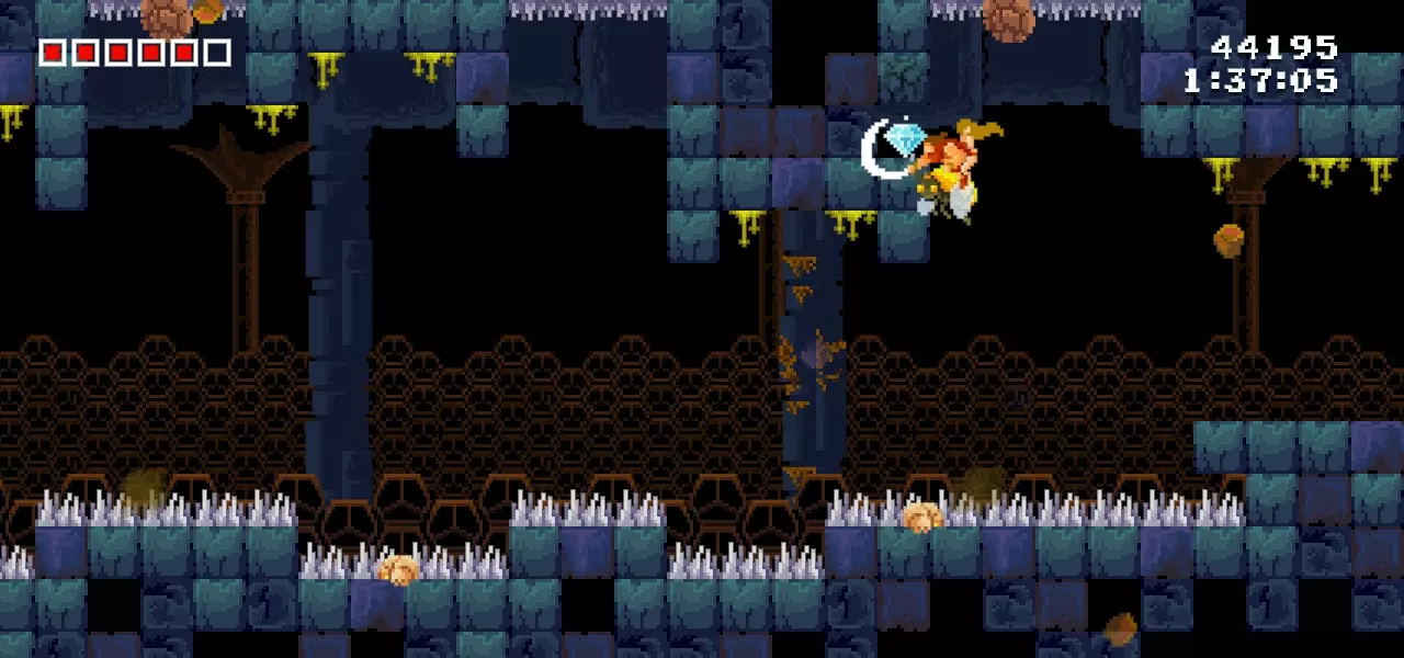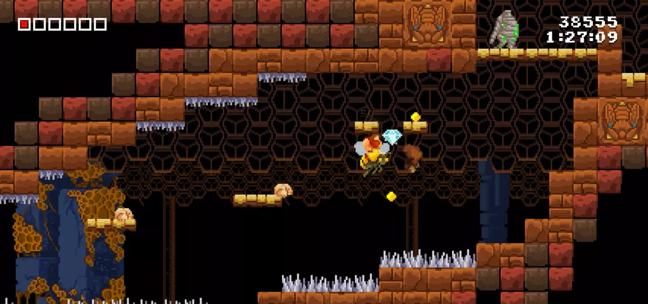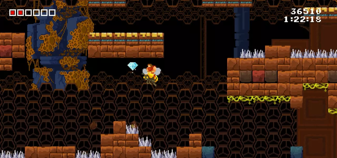 在其中一个蜜蜂区域,你可以选择向上或向下走。保持在平台下方,快速去拿钻石。第11颗钻石