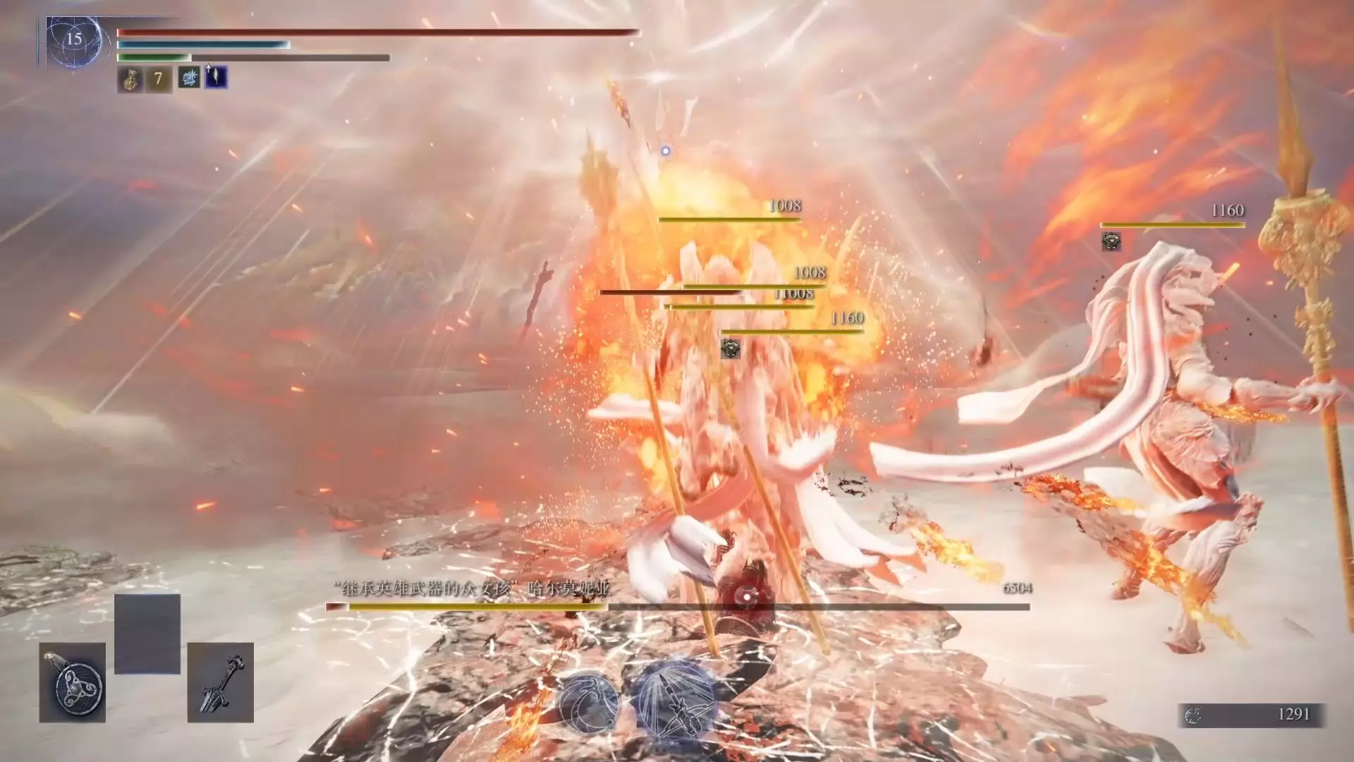 这是《艾尔登法环》的联机战斗内容,玩家匹配到队友后,共同对战BOSS“继承英雄武器的众女孩”哈尔莫妮亚,玩家觉得能有直面该BOSS的队友很畅快,展示了激烈的BOSS对战过程。