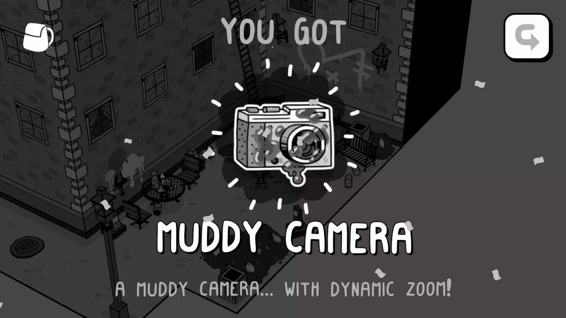 A True Completionist 完成游戏中的所有任务 You Found Us! 你真的很会用那台相机! 前往奥克兰维尔的酒店并进入。站在中间,用相机向上看 物品栏 背包 - 泥泞相机 前往日志城的鼠 skullz crew,他们可以帮你清洗相机