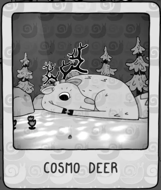 奈莉可 她在气球家族的房子里 宇宙鹿 进入那座造型奇特的塔后,抬头拍摄发光的盒子,你会发现一个秘密。你可能需要再和那个家伙对话一次。也尝试抚摸这些动物 泰迪 它在徒步旅行者的房子里的沙发上 毛球 天文台前面有很多 刺猬 在树下,靠近生日派对的地方 陨石伙伴 小行星坠落之后,它会在陨石周围盘旋 山羊 生日派对前面有一只山羊 靠近摄影挑战8的山顶上有一只山羊 滑雪缆车上方的山上有一只 完成挑战后,它们会出现在老人房子附近的小山上 猫头鹰 它在摄影挑战8附近 雪鸟 在滑雪缆车前面 塔托外星人 它在天文台里 塔托滑雪者 它在滑雪山顶上 山顶 我们生了火 还一起交流