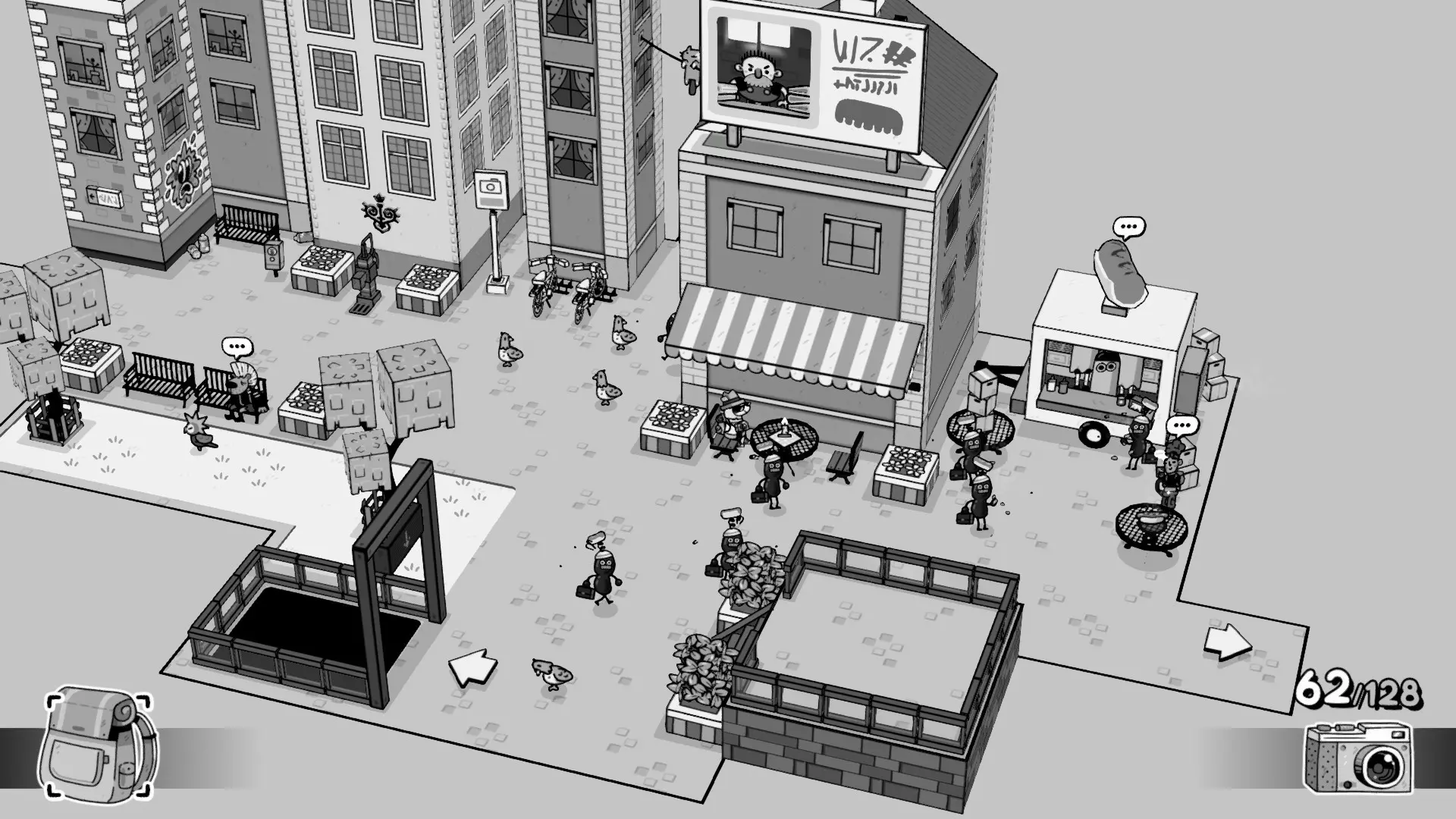 - 年轻又励志! 给她和热豆商店以及面包店拍张照。别忘了食物 - 设计难题 戴上热豆帽 - 总摔跤的奶奶 一路爬上楼梯,拿起你的相机,建筑物后面有一个发光的盒子 - 偷东西的乌鸦 它在人行横道旁的一棵树上 - 老鼠面包店 按喇叭把老鼠赶走 - 阴森恐怖的城市 给他看一张奥克兰维尔的照片 - 幽灵约会 带她去约会!找一个有两把椅子和一支蜡烛的地方。小心,她很挑剔。 动物 商务鸽子 它在汽车顶上,靠近骷髅涂鸦 波蒂略 它在面包店前面
