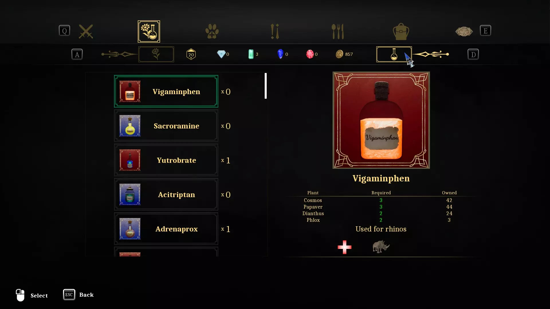 此部分显示你之前制作或发现的药品。