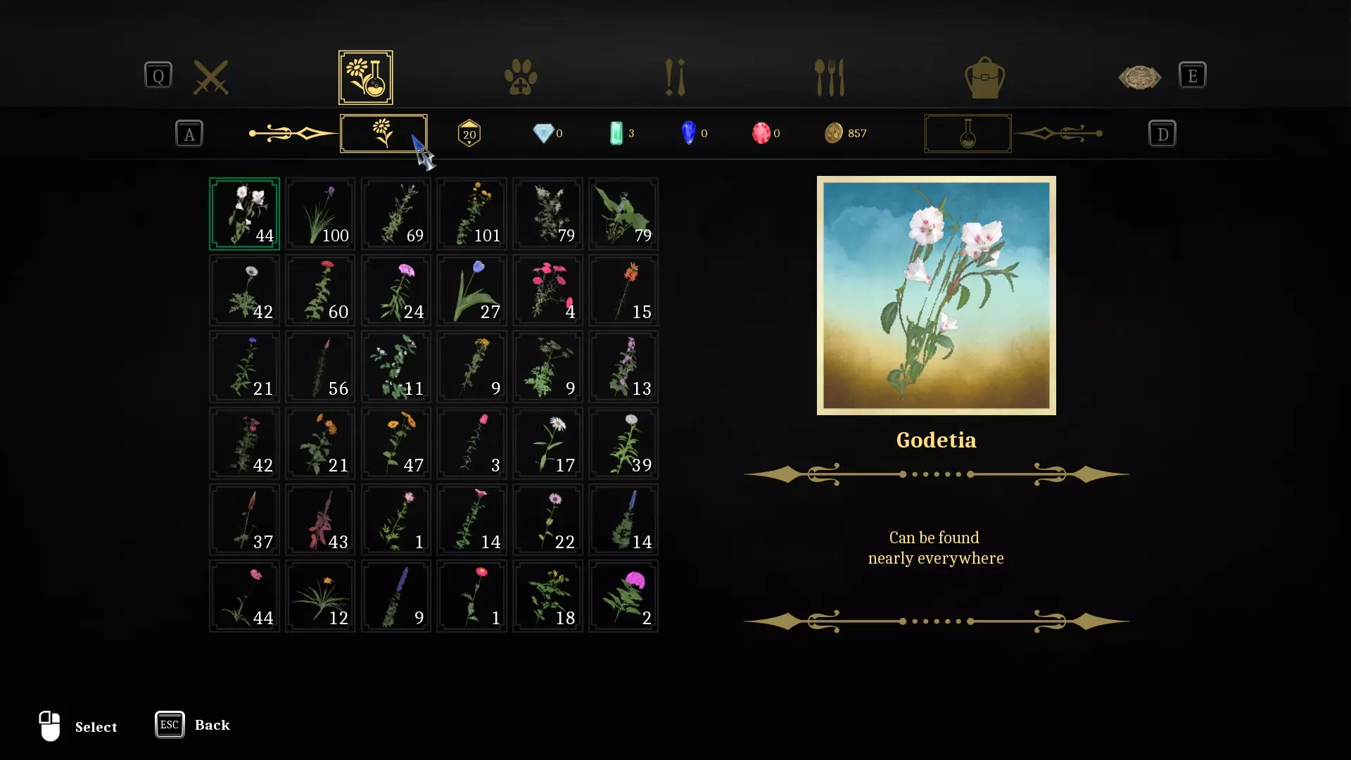 此部分显示你拥有的植物数量以及它们的发现位置。