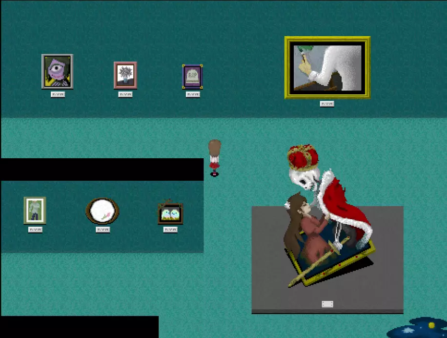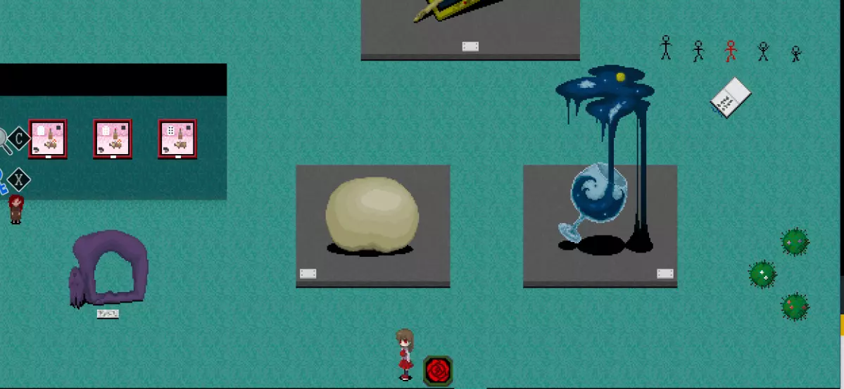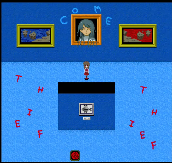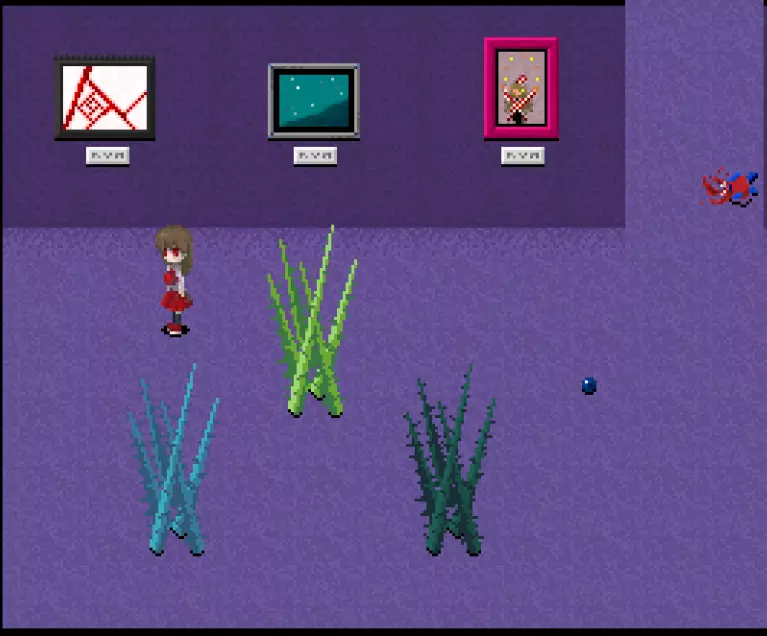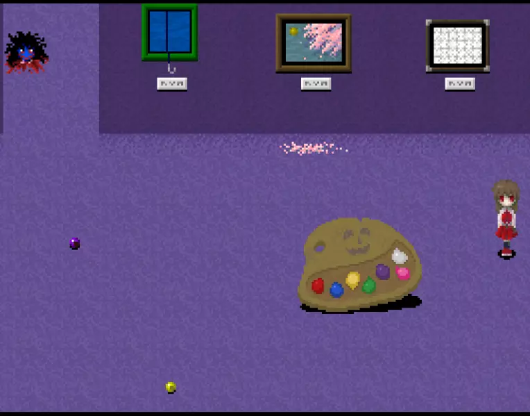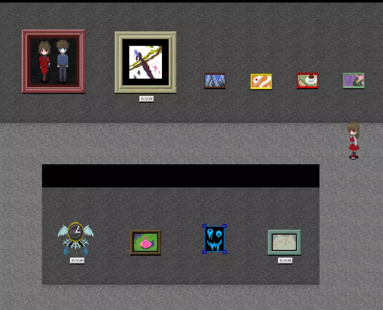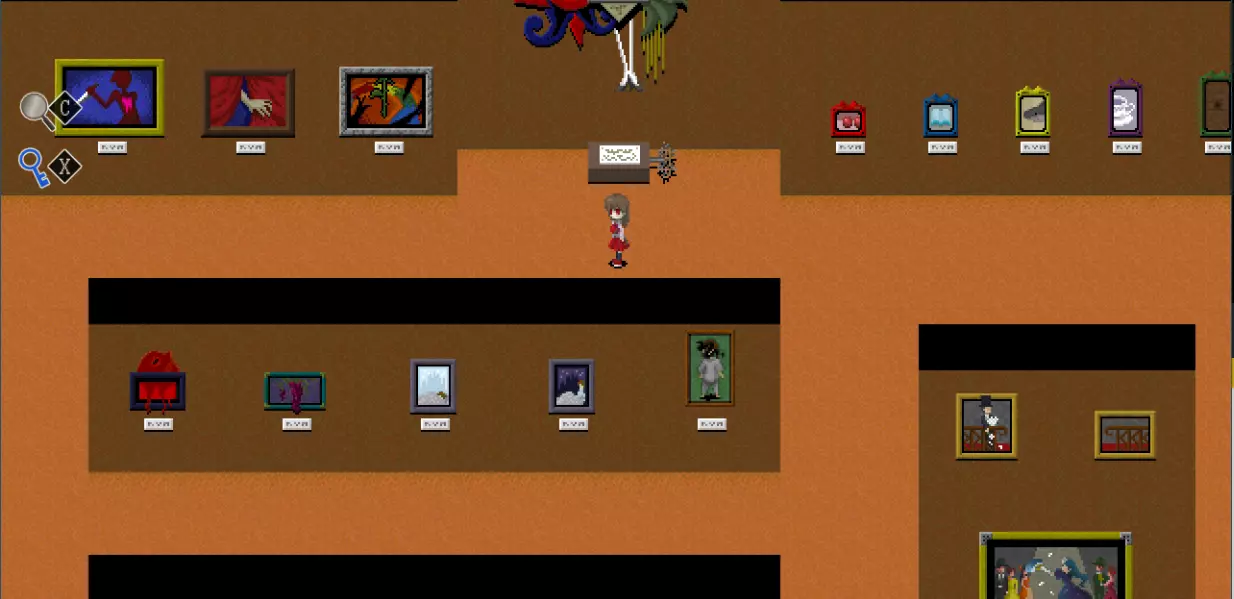 【???区域】*剧透警告* 在真实展厅中有一扇白色的门,门上标有“???区域”。 ???区域内有4件作品: - 最终舞台 - 被遗忘的肖像 - 玛丽 - 虚构世界 *注:只有在游戏中见过“最终舞台”这幅作品后,才能进入这个房间。 “最终舞台”可在 bonus 地牢(青色/深渊空间、橙色等)的结尾处看到。 达成“被遗忘的肖像”结局后可获得“被遗忘的肖像”。 烧毁画布后阅读铭牌可获得“玛丽”。