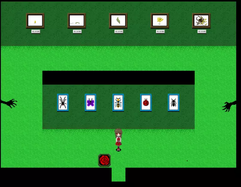 绿色区域 绿色区域内有5个作品: -序章 -第一章 -第二章 -最终章 -尾声 此外可见: -蜘蛛画作 -蝴蝶画作 -蜜蜂画作 -瓢虫画作 -蚂蚁画作 蚂蚁也在这个房间里游荡!