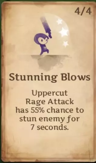 裂颅者:为猛击提供暴击率倍率加成。1级时为1.5倍,2级时为2倍。 狂怒卡牌