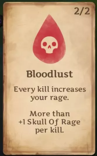 嗜血:每击杀一个敌人都会提升你的怒气等级。首次升级后,每次击杀可获得1个怒气头骨;第二次升级后,每次击杀可获得2个怒气头骨。