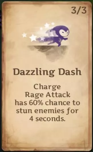 炫目冲刺:使冲锋有几率击晕敌人,初始眩晕时长为2秒。