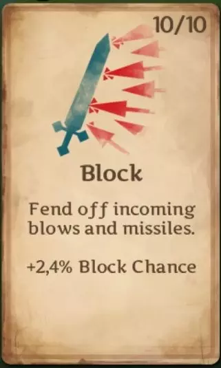 格挡:每级提升2.4%格挡几率。