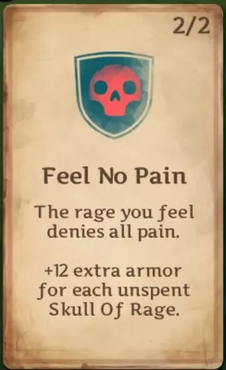 无痛:每拥有一个怒气颅骨,你将获得额外护甲值。首次升级为每个怒气颅骨提供6点护甲,第二次升级为每个怒气颅骨提供12点护甲。