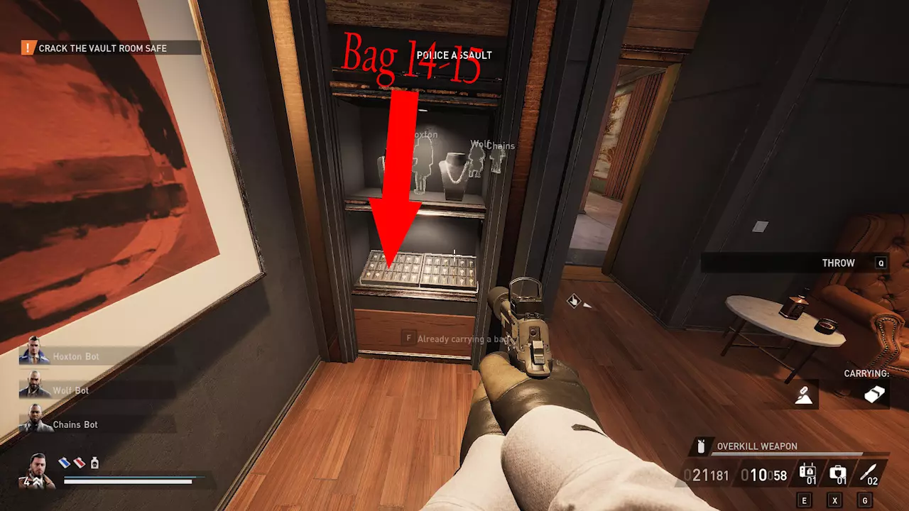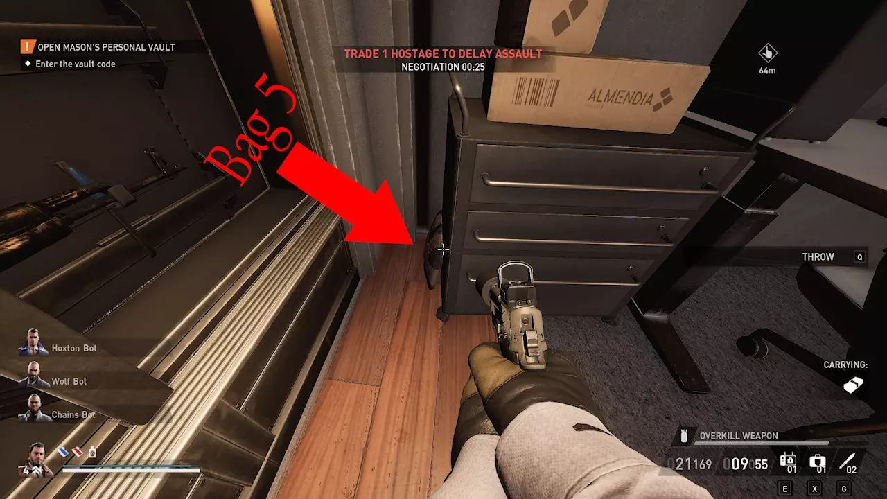 任务进度 收集完这5个袋子后,继续执行任务,直到能够进入金库获取本任务最后的10个袋子。 金库 在金库内可以找到本任务最后的10个袋子。