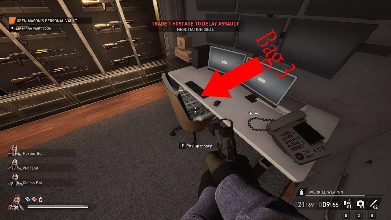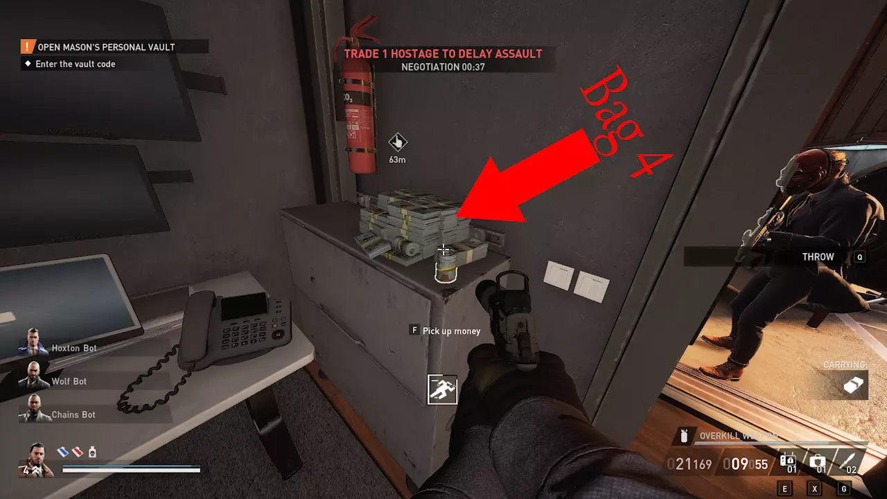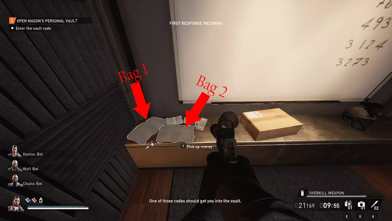 前往房间左侧,在那里你可以找到最初的2个袋子和散落的现金。