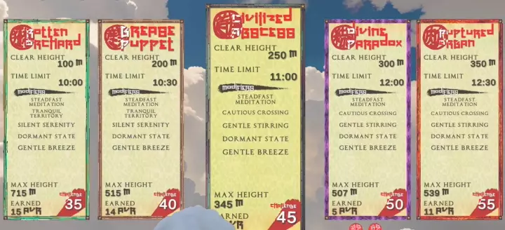 【水晶】(指那些能将你向上发射的物品)在没有【软萌怪】或其他助你攀升至高处的道具时会很有帮助。尽管它们只能使用一次,但在发射自己方面是可靠的。和【软萌怪】一样,它们只能在【神圣悖论】地图中找到,不过可能会出现一些奇怪的bug问题。 最佳游玩地图 如果你想爬得极高,确实存在一张“最佳地图”。我推荐用于挑战极高高度的最佳地图是【神圣悖论】,因为它包含【软萌怪】和【水晶】,这两种都是帮助你冲向高空的好选择,而且在这张地图上你能找到大量的【软萌怪】和【水晶】,因此它是最佳选择。另一个不错的选择是腐烂果园,那里会生成大量哥布林(Gobbos),还有破碎奥班(Ruptured Orban)。