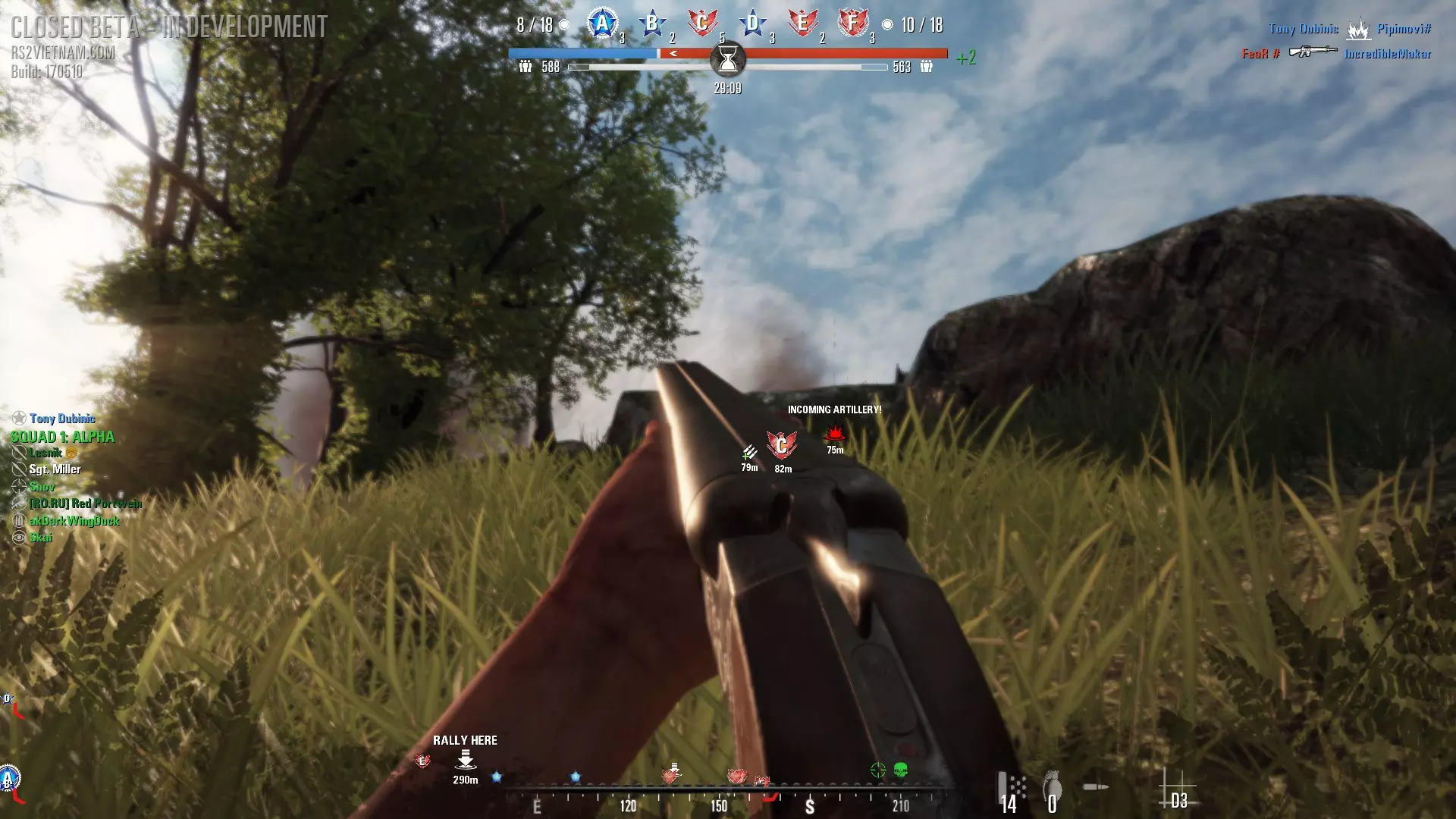 除了对抗直升机外,RPG还能有效打击掩体和其他隐蔽处的步兵。好好利用,灵活应变,注意不要瞄准友军。此外,在这款游戏中,RPG的设定更为真实——破甲弹能够穿透障碍物并对掩体后的目标造成伤害。如果你听到砖墙后有美军的声音,向墙射击,墙另一侧靠近墙壁的人就会被击杀。请记住,RPG的爆炸范围(即造成伤害的区域)较小,因此向移动的步兵射击时,要尽量瞄准射击。 重要!RPG的尾焰(BackBlast)具有杀伤性。如果你向站在你身后的友军人群开火,会将他们炸成碎片。开火前请务必考虑到这一点。 顺便说一下,用尾焰击杀敌人会获得成就。 武器: SKS 双管猎枪 手枪 RPG 2.7.无线电员(Radioman) 与美国陆军的无线电员类似。协助指挥官将共产主义思想传播给美国人。 武器装备: SKS、56式、AKM 手枪 烟雾弹 2.8.指挥官(Commander) 该职业的任务与美军指挥官类似。区别在于支援方式。