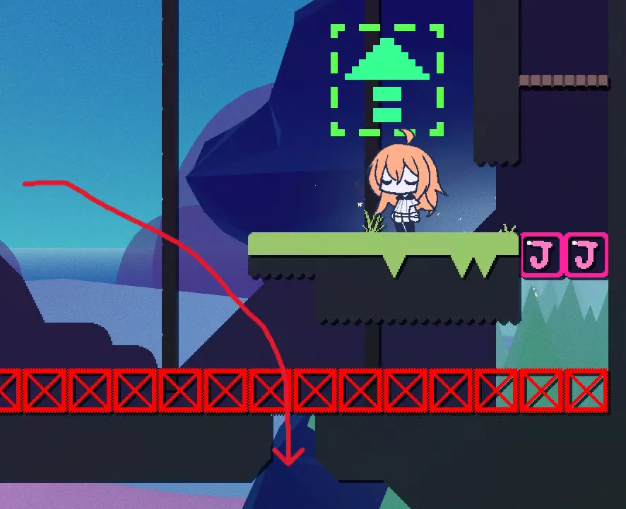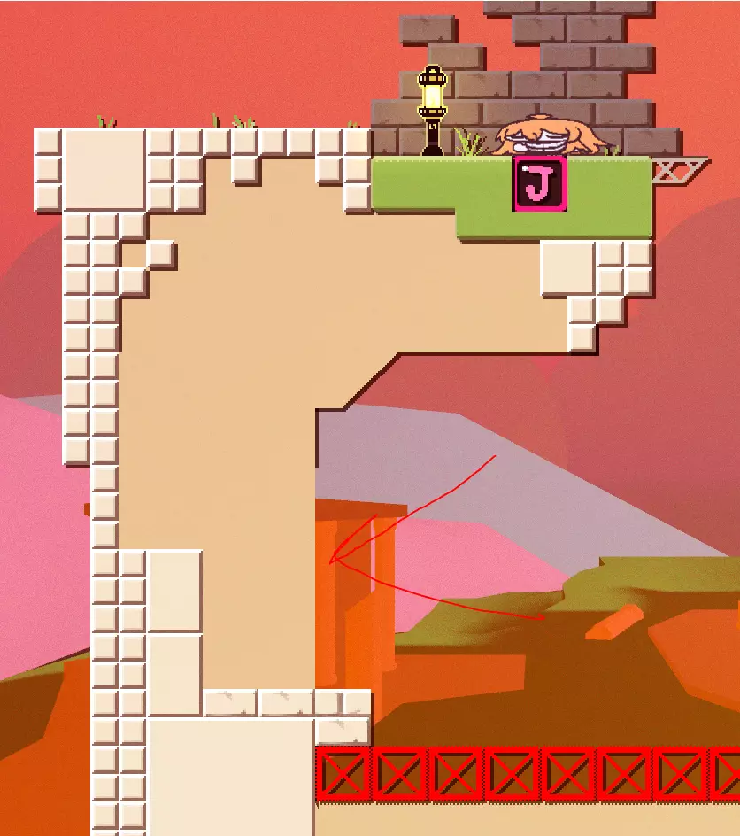 画左侧的地板上有条路,但我不知道它通向哪里,因为我操作不太好。 * GC工厂最后的气泡饮料和提灯在悬崖区域,但仍被算作这里的收集物。 悬崖区域(1个提灯,1个气泡饮料,钥匙) 这里的气泡饮料和提灯属于GC工厂的收集内容,但我还是把它们列在这里啦 :) 同样,这把钥匙属于森林洞穴,但也列在这里啦 :) 关于岛上仅有的那个气泡饮料,获取方法其实很简单,跳下去并在废墟上弹起就行。记得持续按上键来获得最大高度(不过我有点怀疑这是不是个意外机制,后面其实有正规路线)。 拿到气泡饮料后,如果你再和大师对话,他们会问你是否还想被弹飞。如果你选择同意,他们确实会把你扔到岛上,并授予你【I'm A Chuckster】成就。 钥匙位于悬崖入口前。在悬崖处点亮灯笼后,向后退并跳下。你需要在No方块上弹跳,以到达最右侧墙壁下方,然后通过几次向上摆动获得足够的高度。如果高度不够,你会落到金樱桃休息区。成功上去后,前方就是钥匙,以及通往森林洞穴第二个灯笼的捷径。